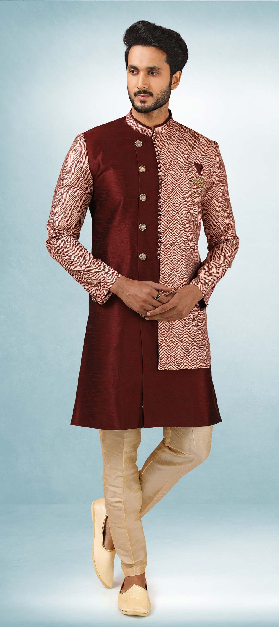 Art Silk IndoWestern Dress in Beige and Brown with Printed work