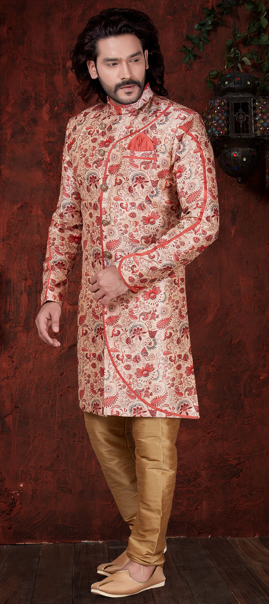 Art Silk IndoWestern Dress in Beige and Brown with Printed work