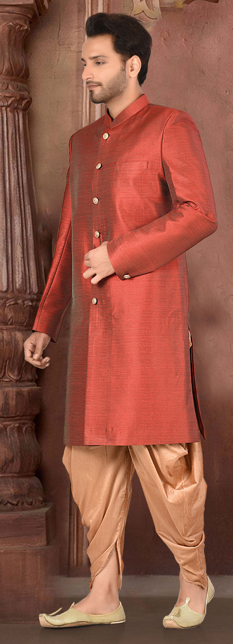 Red and Maroon color IndoWestern Dress in Art Silk fabric with Thread work
