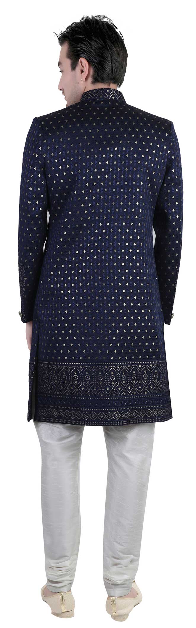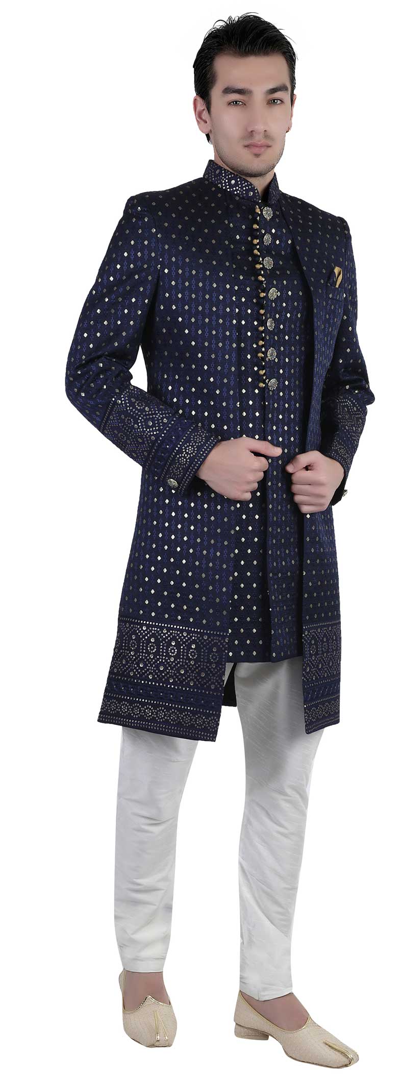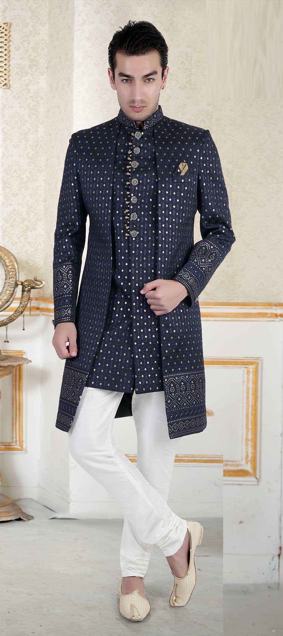 Blue color IndoWestern Dress in Brocade fabric with Embroidered, Resham, Sequence work