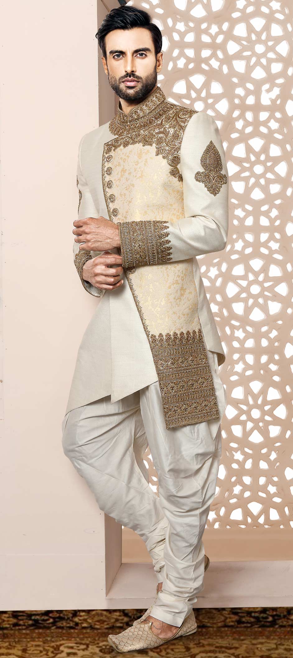 White and Off White color IndoWestern Dress in Brocade fabric with Embroidered, Sequence, Thread, Zari work
