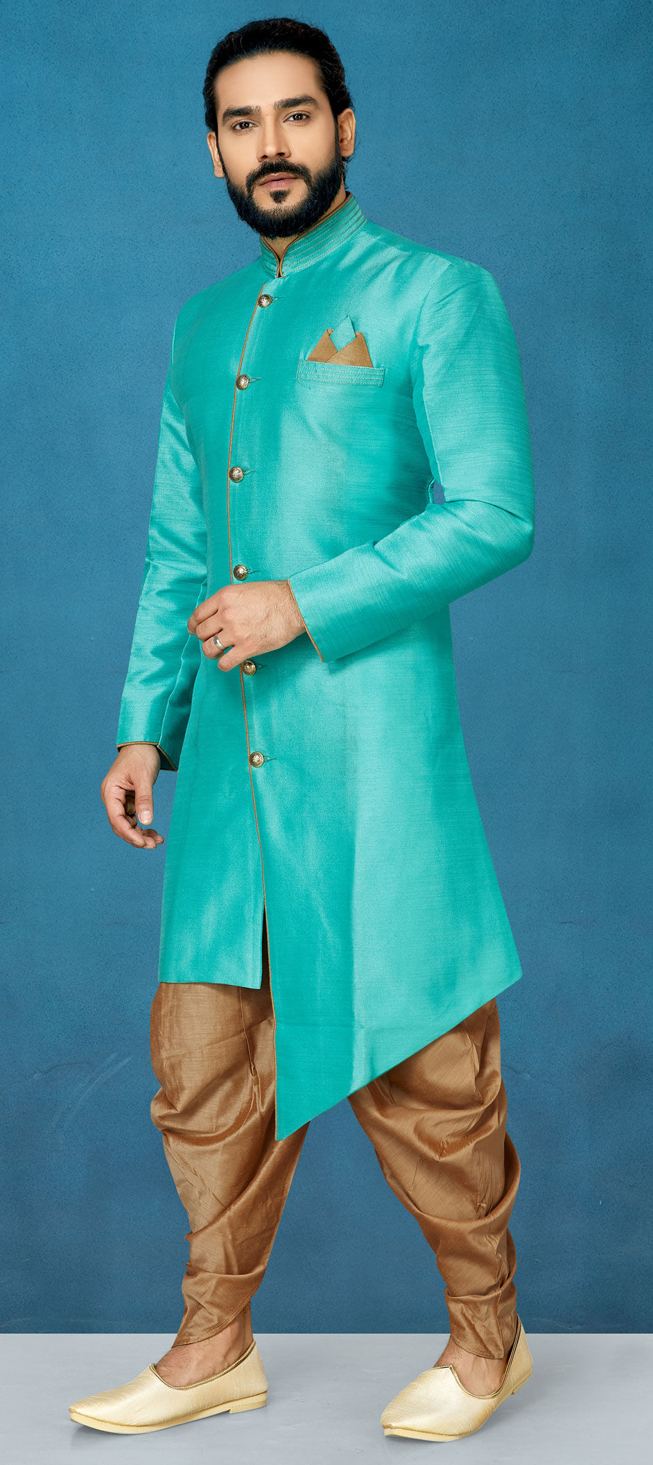 Green color IndoWestern Dress in Cotton fabric with Weaving work