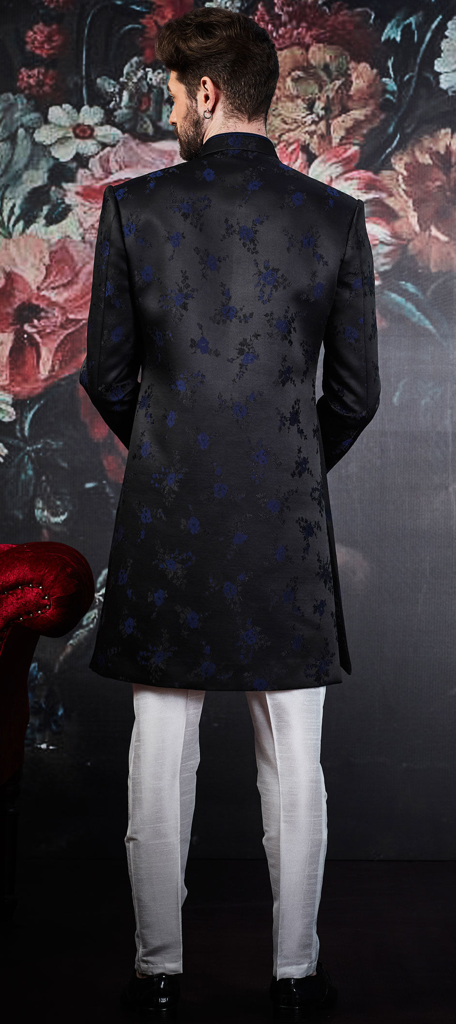 Black and Grey color IndoWestern Dress in Jacquard fabric with Broches work