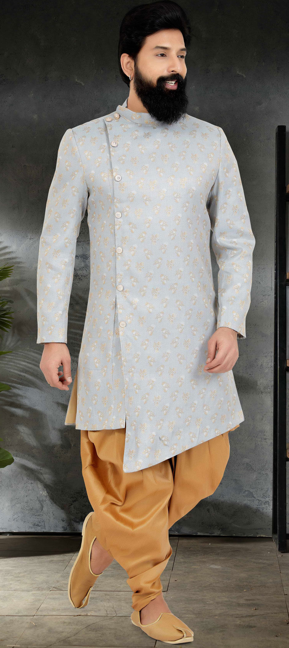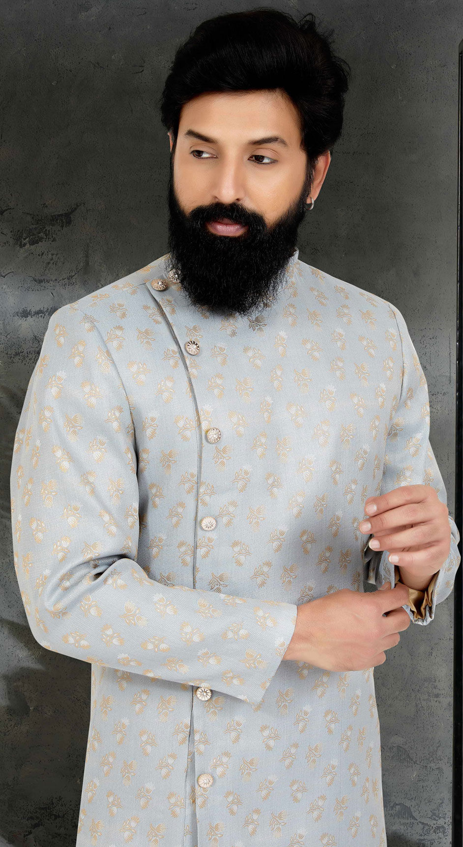 Black and Grey color IndoWestern Dress in Jacquard fabric with Weaving work