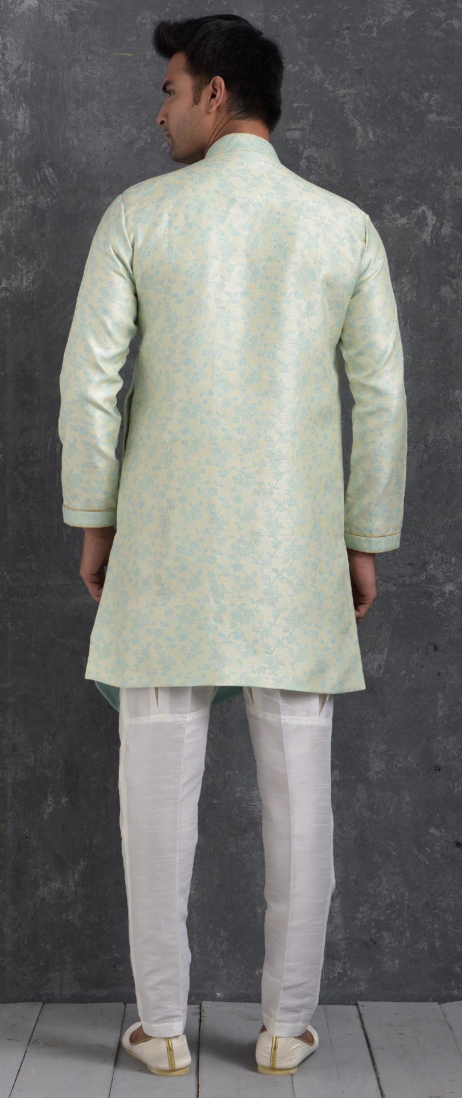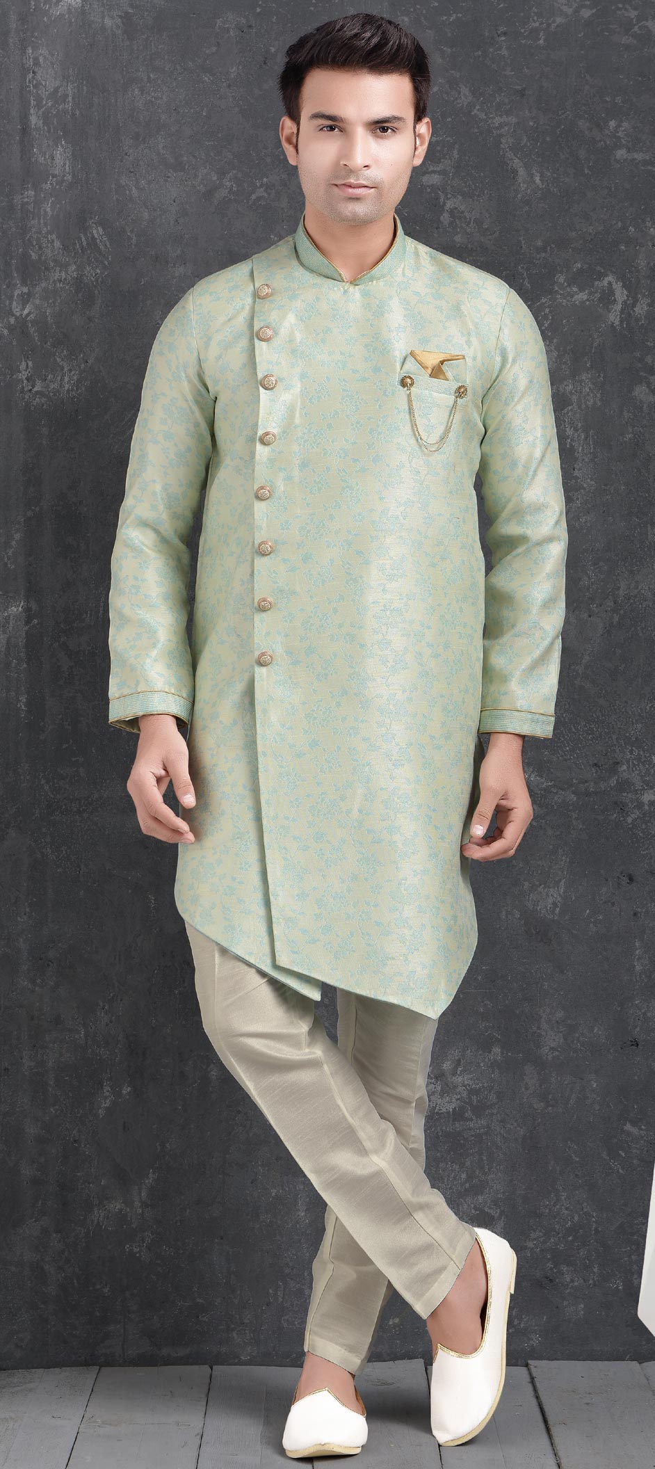 Blue color IndoWestern Dress in Jacquard fabric with Broches, Weaving work