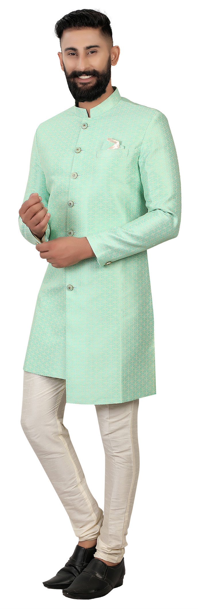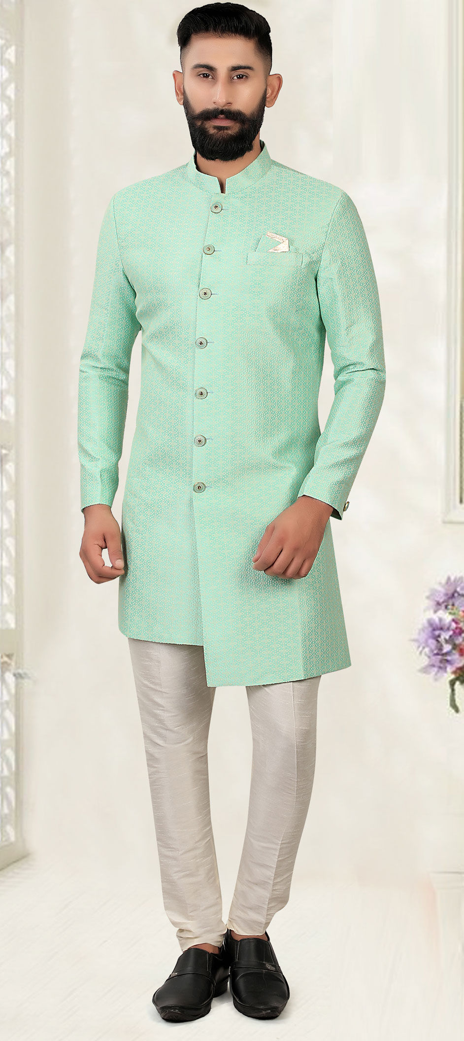 Blue color IndoWestern Dress in Jacquard fabric with Weaving work