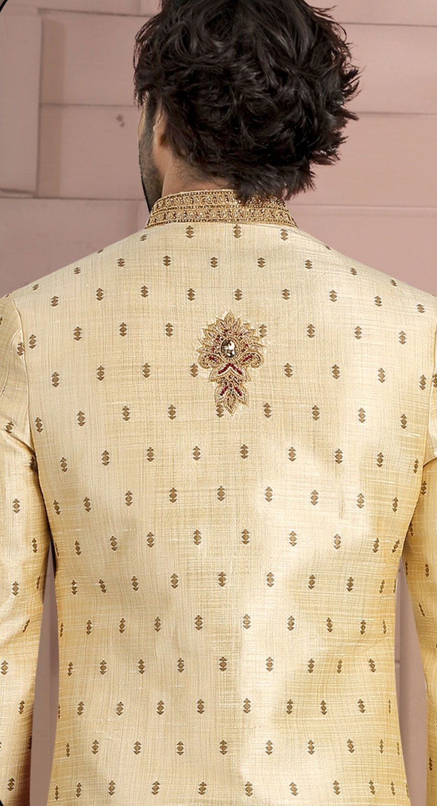 Beige and Brown color IndoWestern Dress in Silk fabric with Embroidered, Thread, Zari, Zircon work