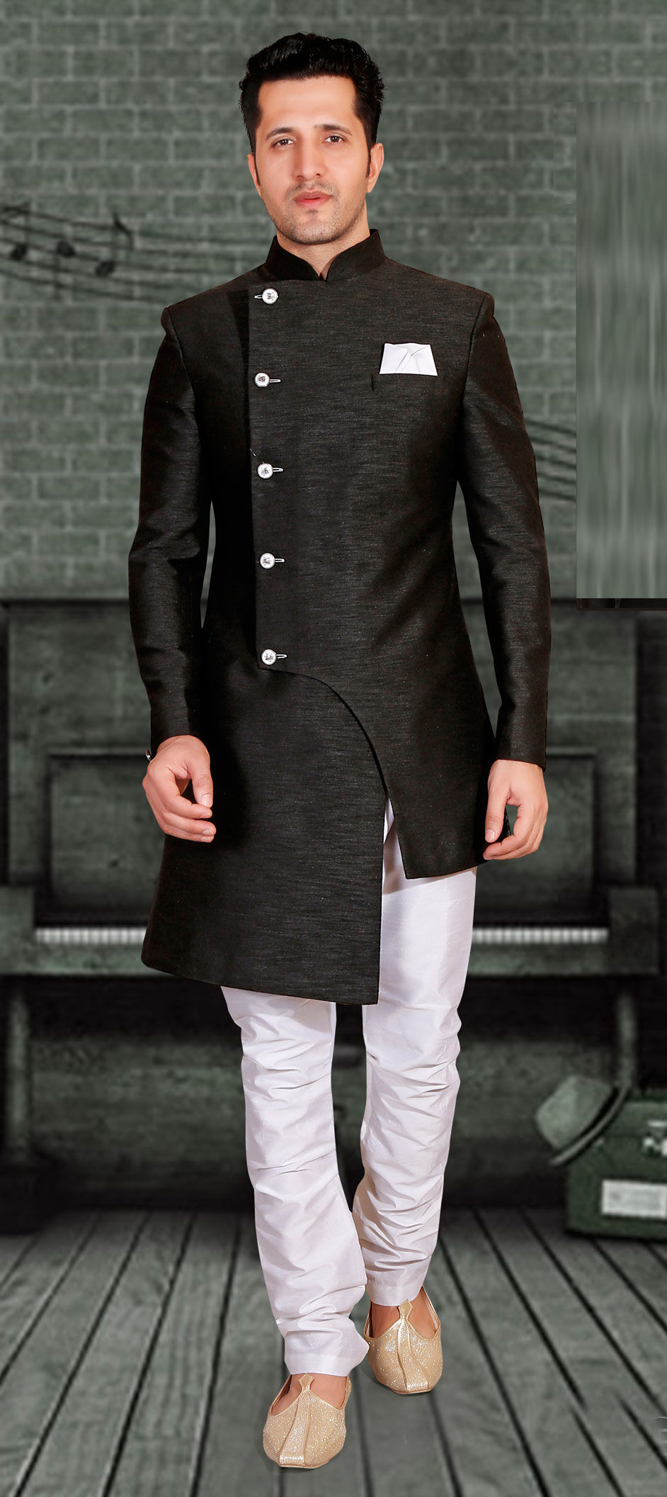 Black and Grey color IndoWestern Dress in Silk fabric with Thread work