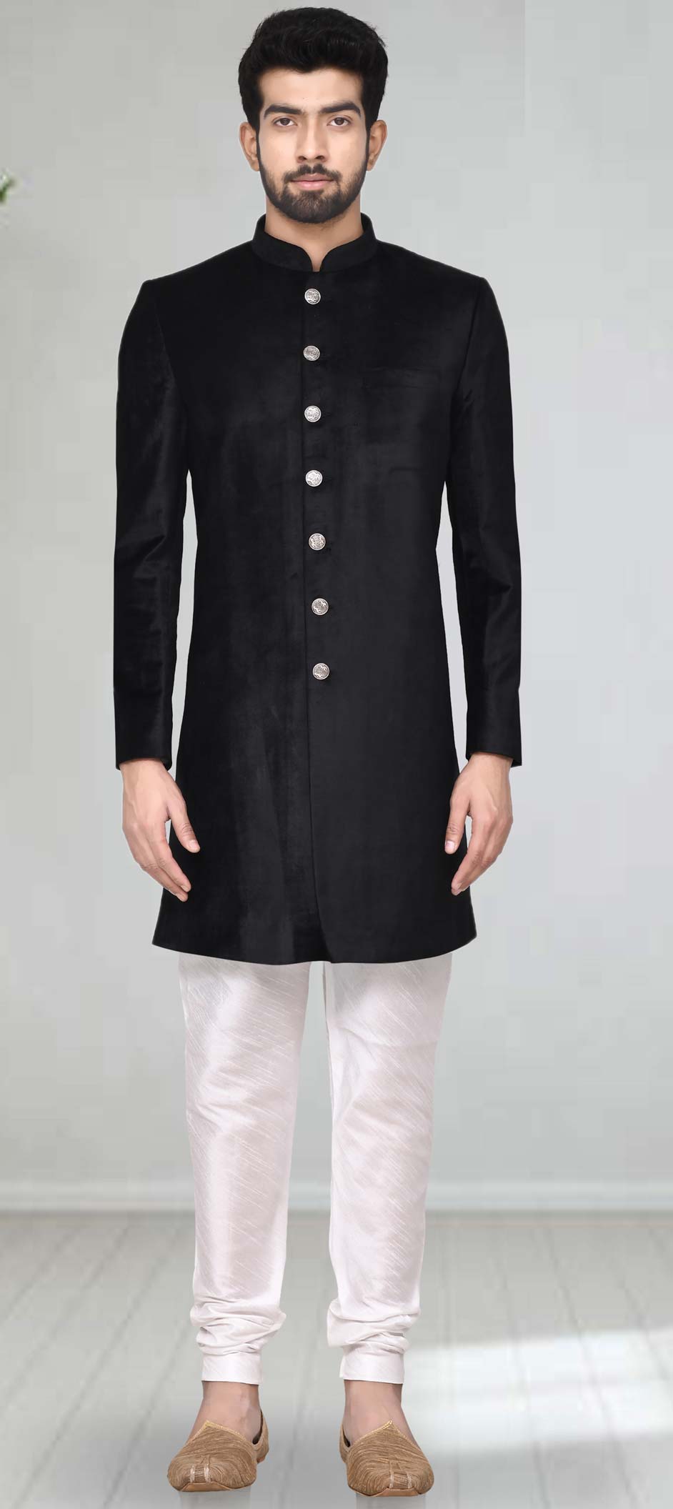 Black and Grey color IndoWestern Dress in Velvet fabric with Thread work