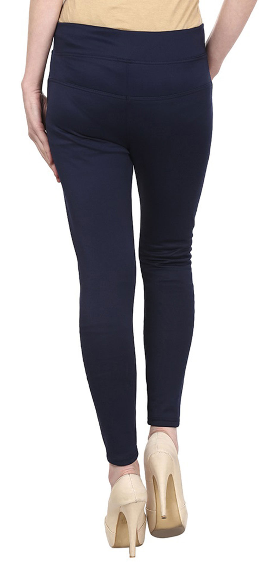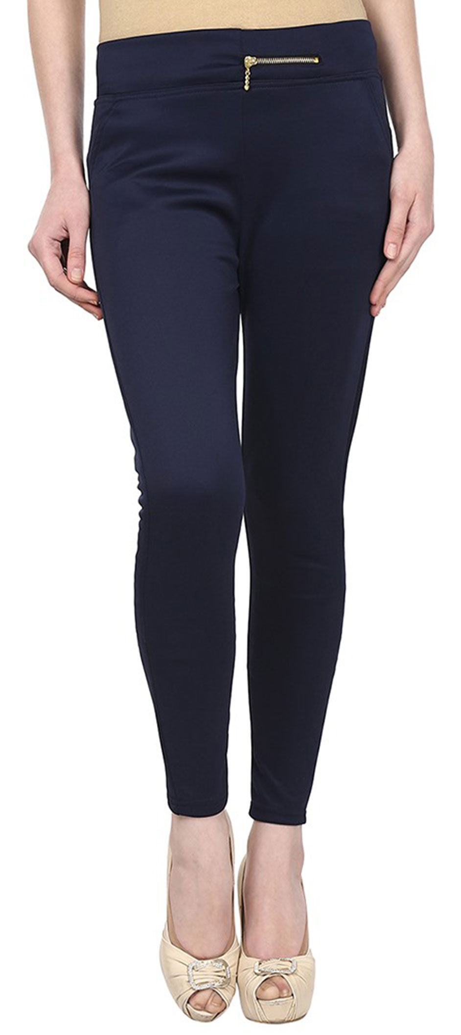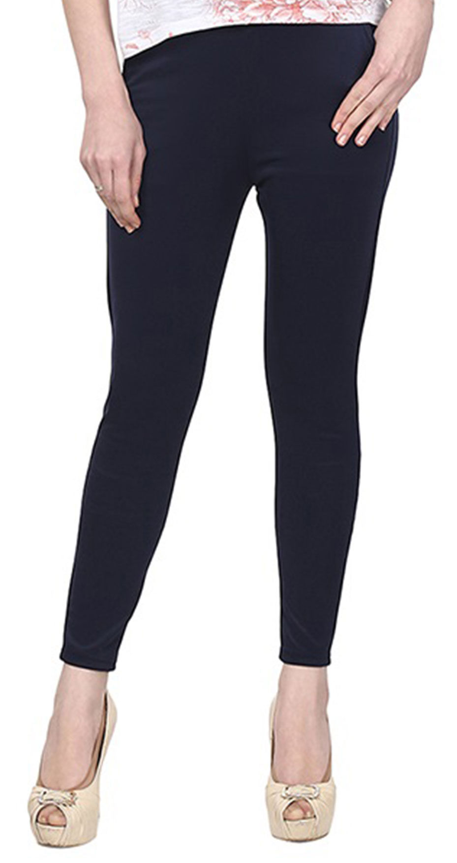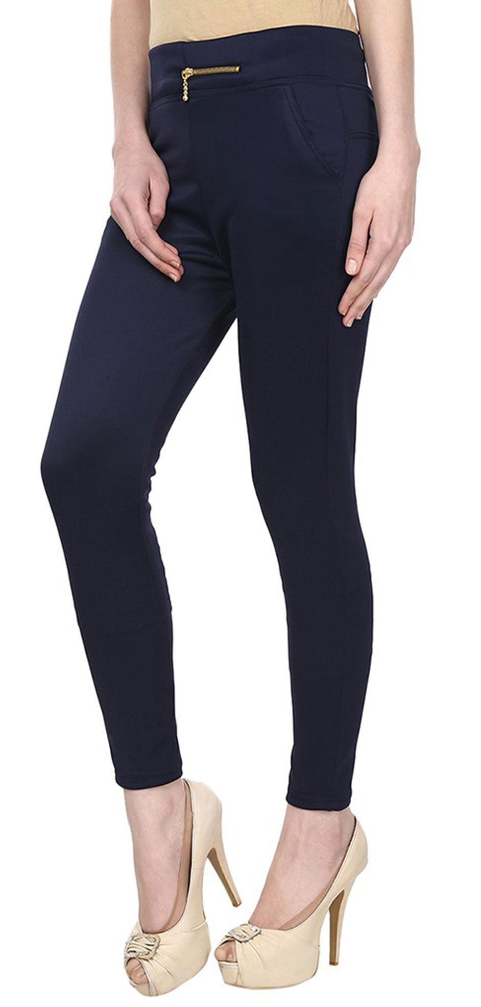 Blue color Jeggings in Cotton, Lycra fabric with Thread work