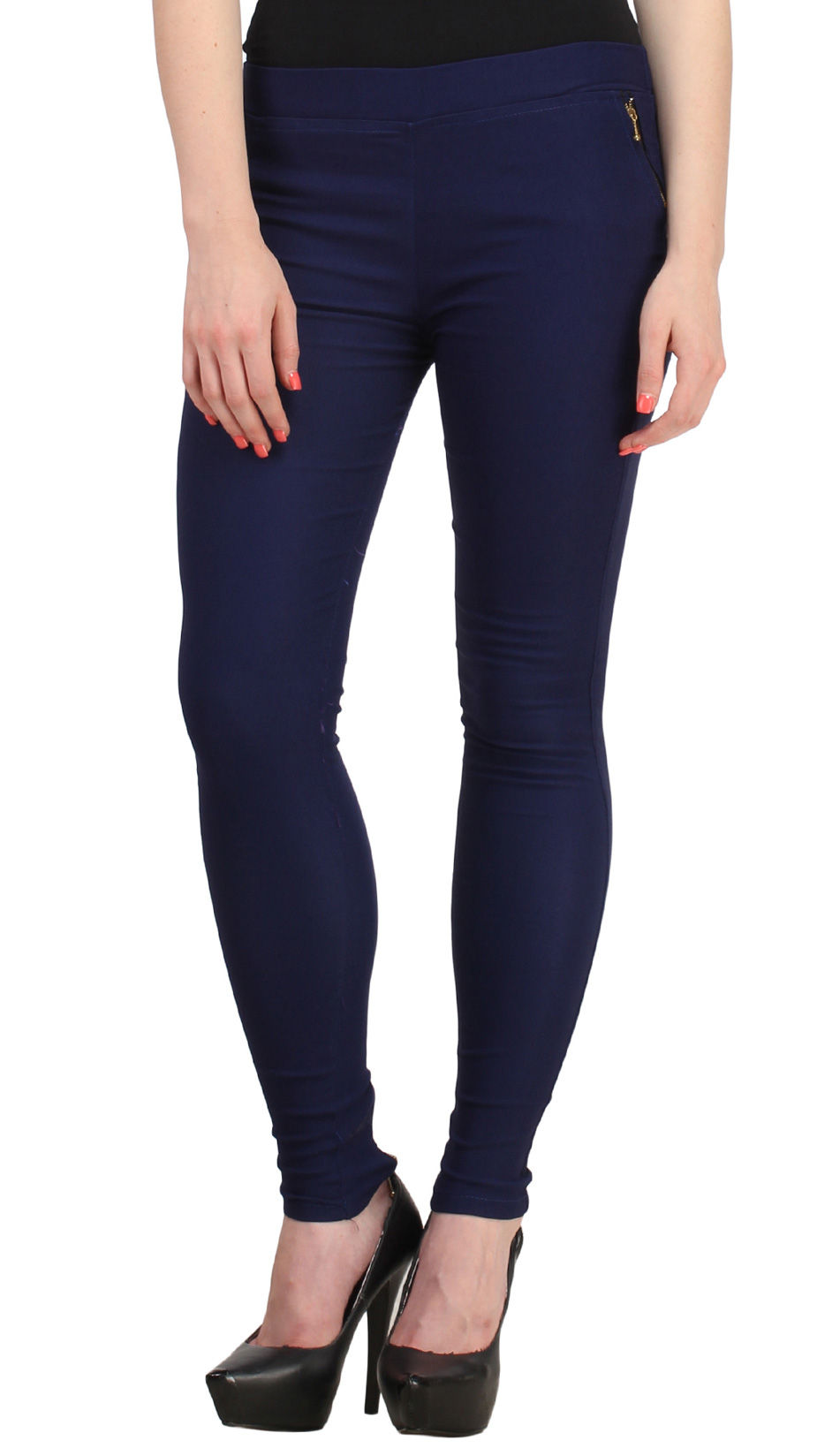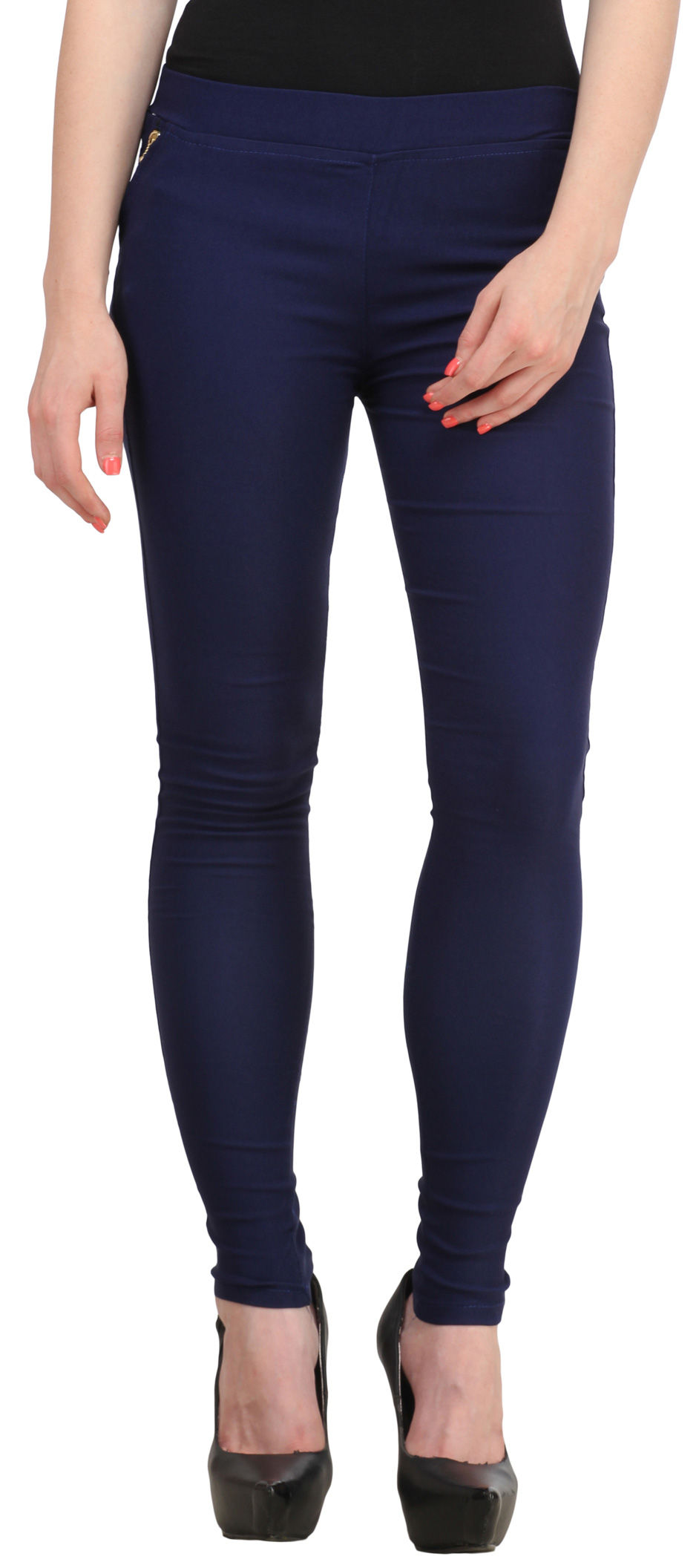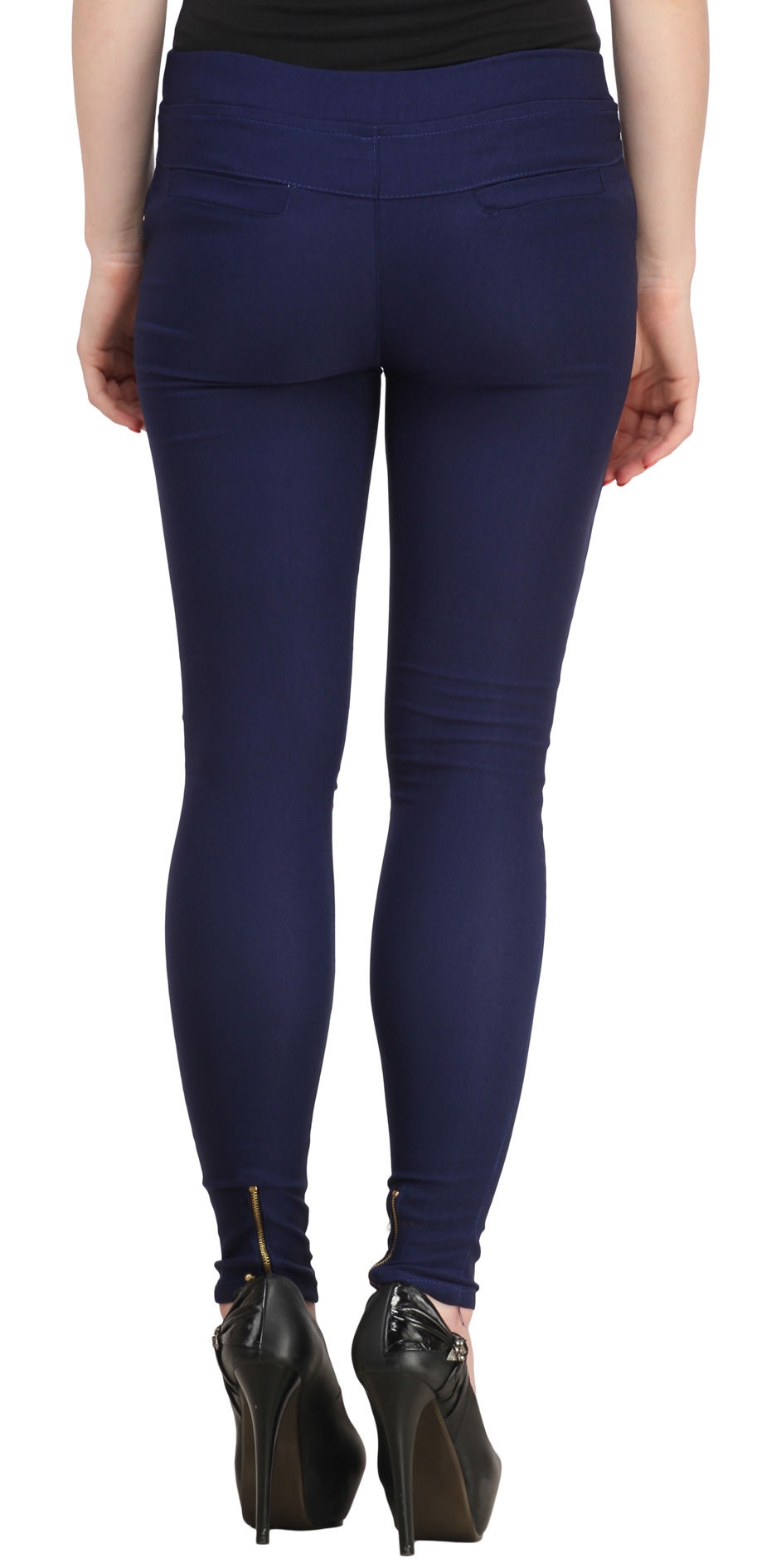 Blue color Jeggings in Cotton, Lycra fabric with Thread work