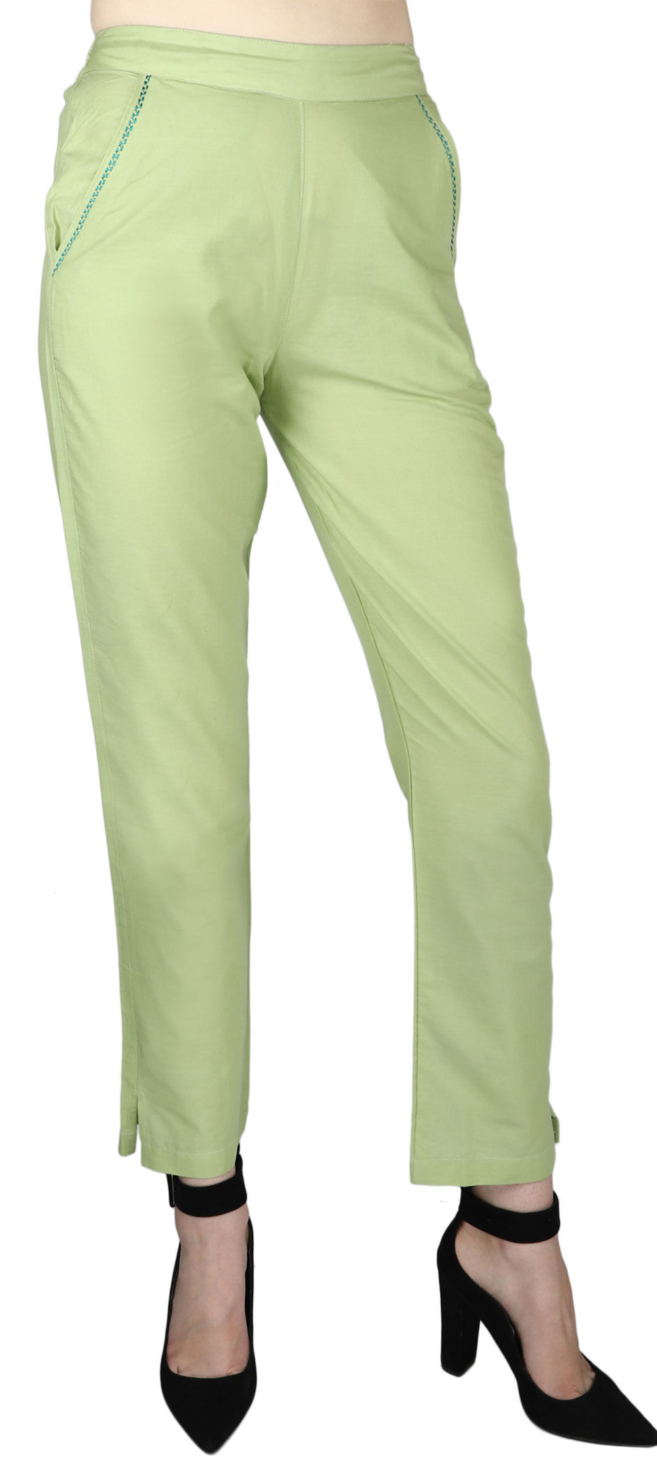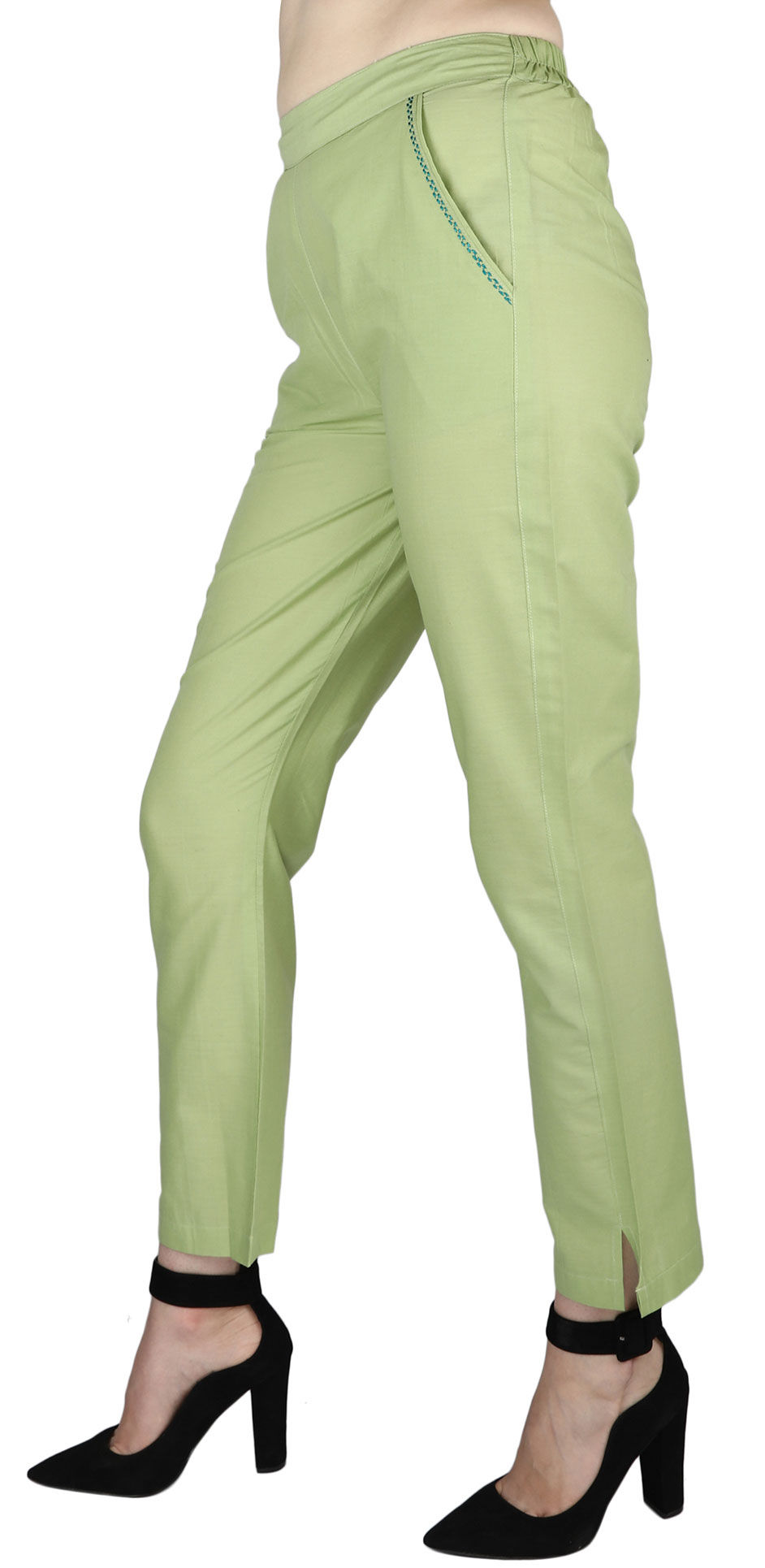 Green color Jeggings in Cotton fabric with Thread work