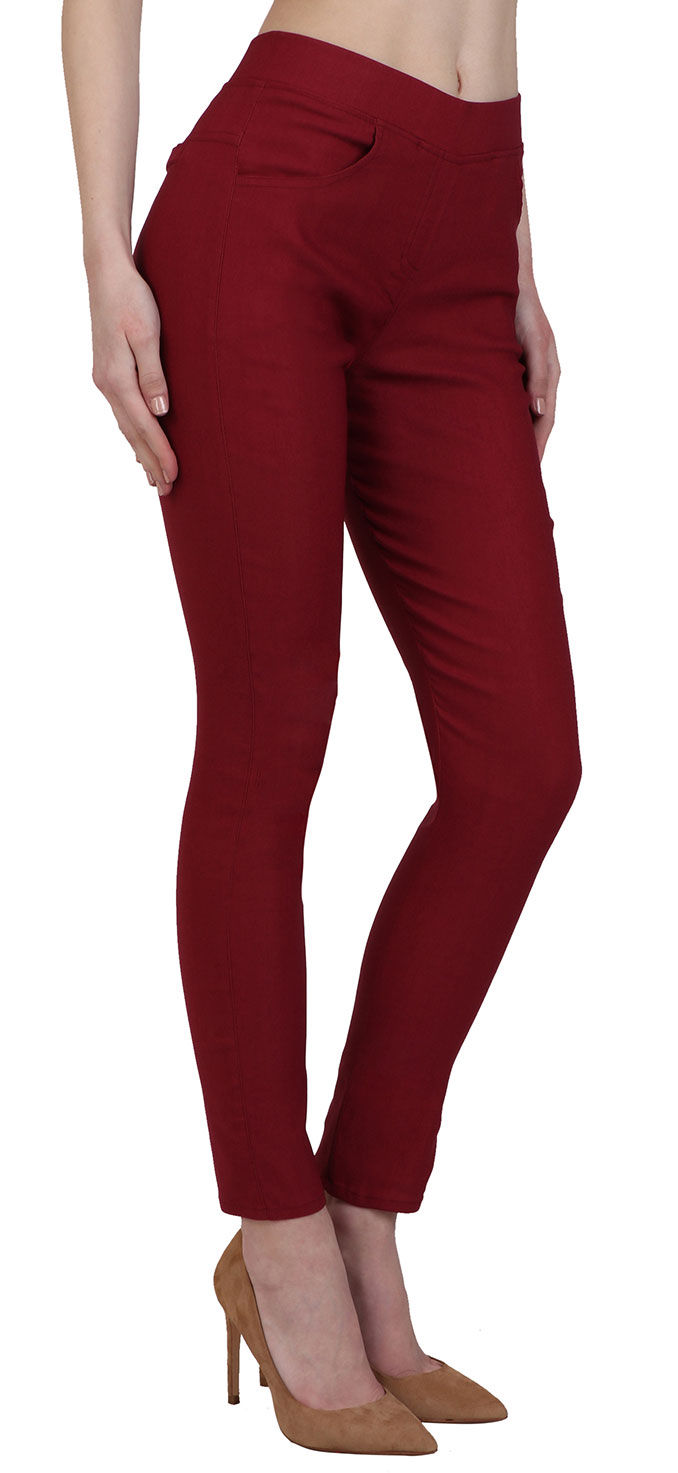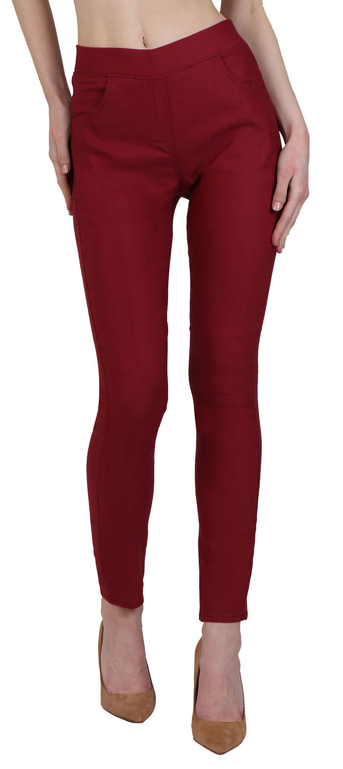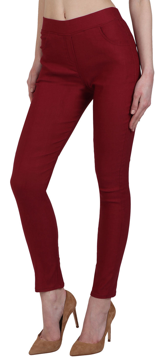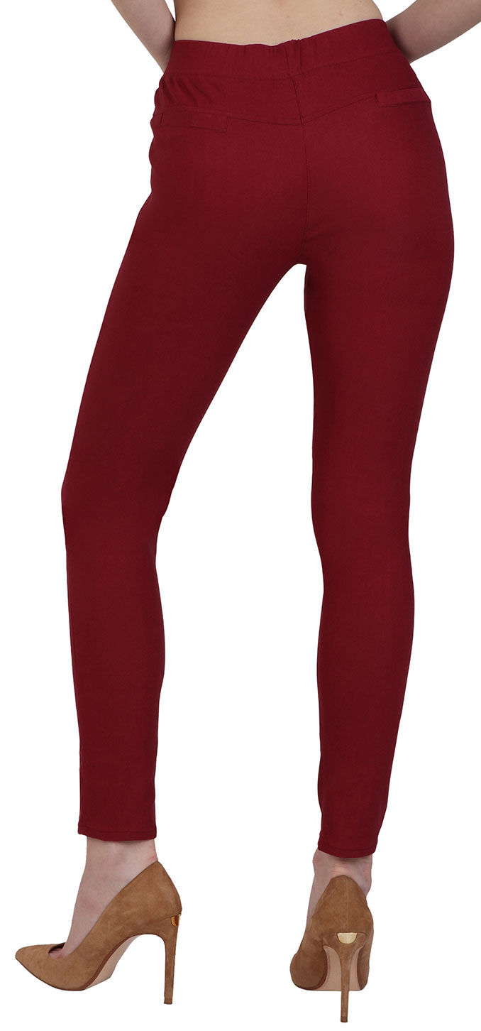 Red and Maroon color Jeggings in Cotton, Lycra fabric with Thread work