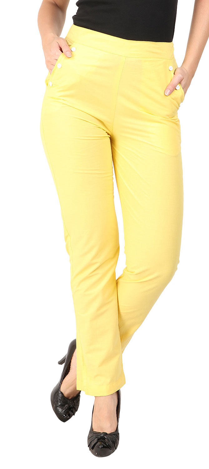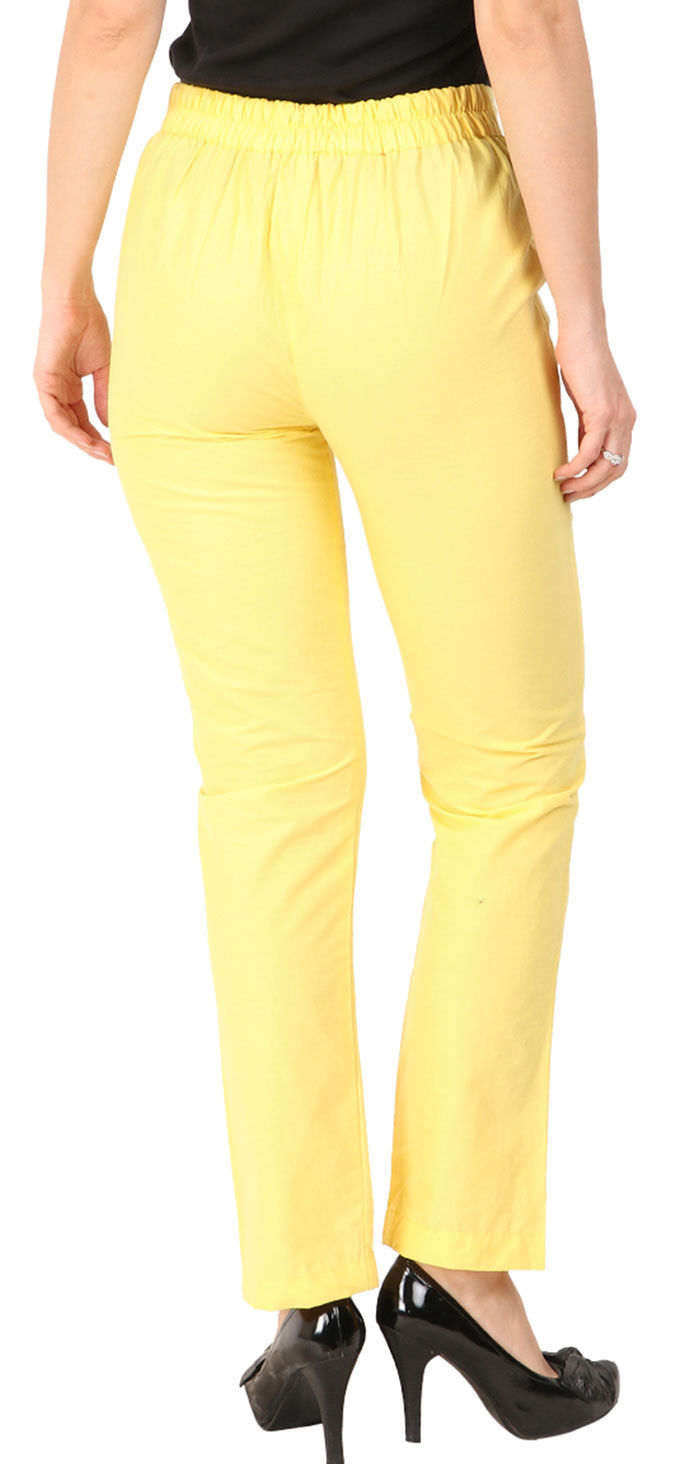 Yellow color Jeggings in Cotton fabric with Thread work