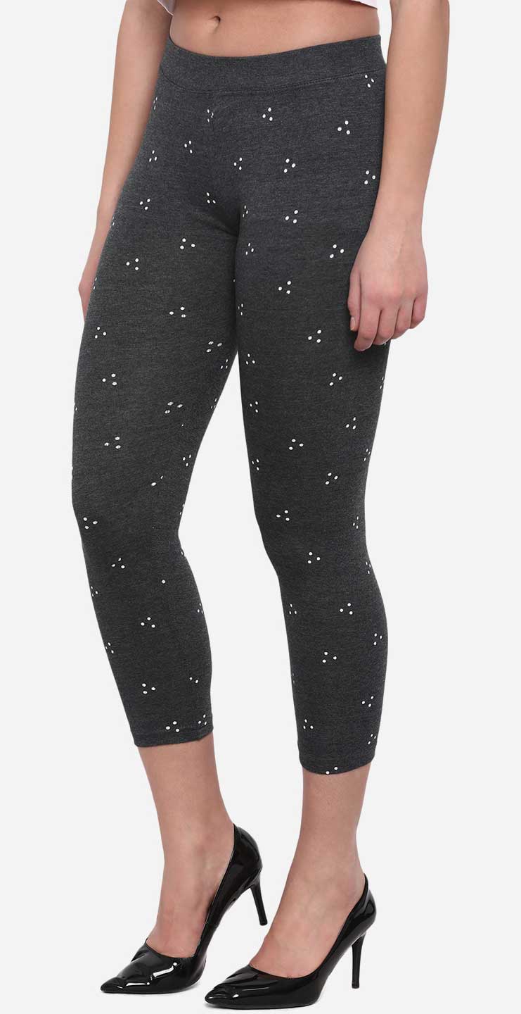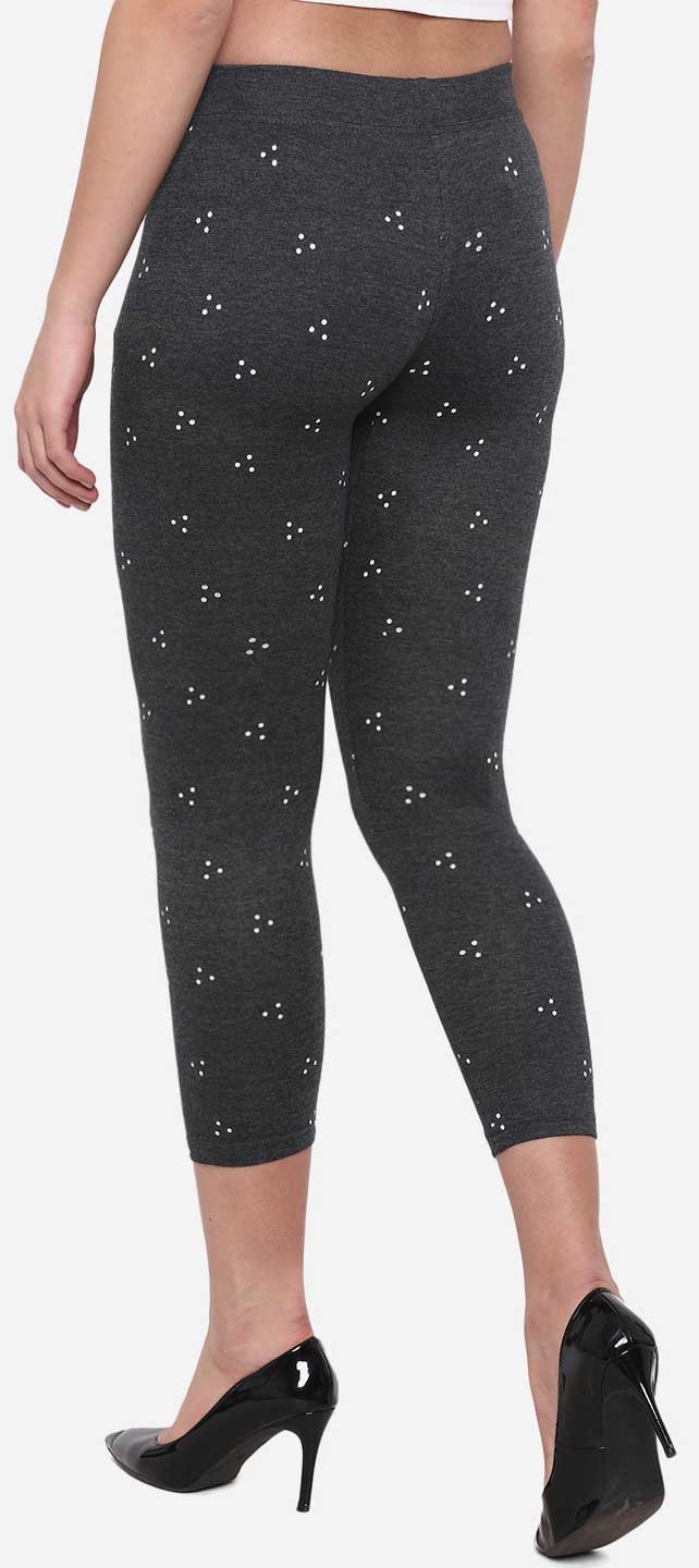 Black and Grey color Jeggings in Denim fabric with Printed work