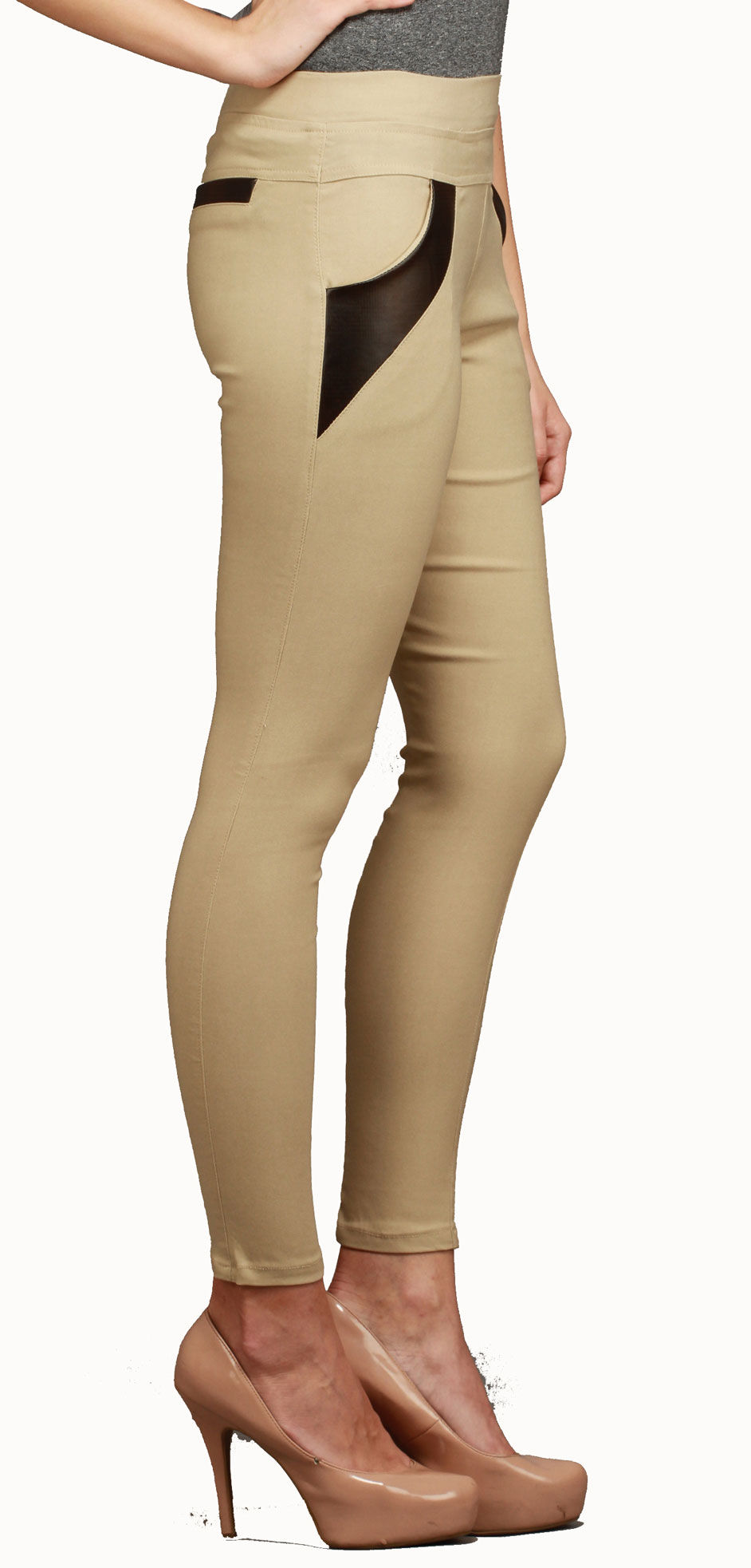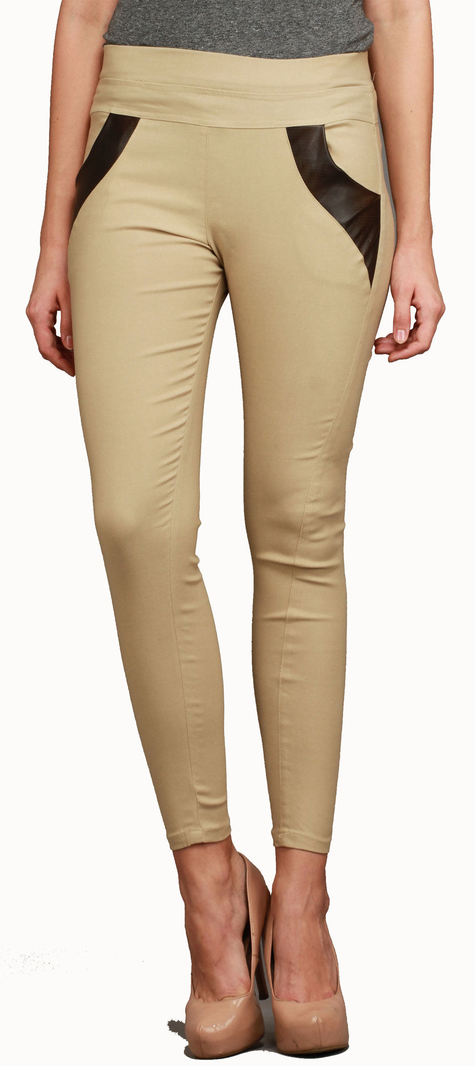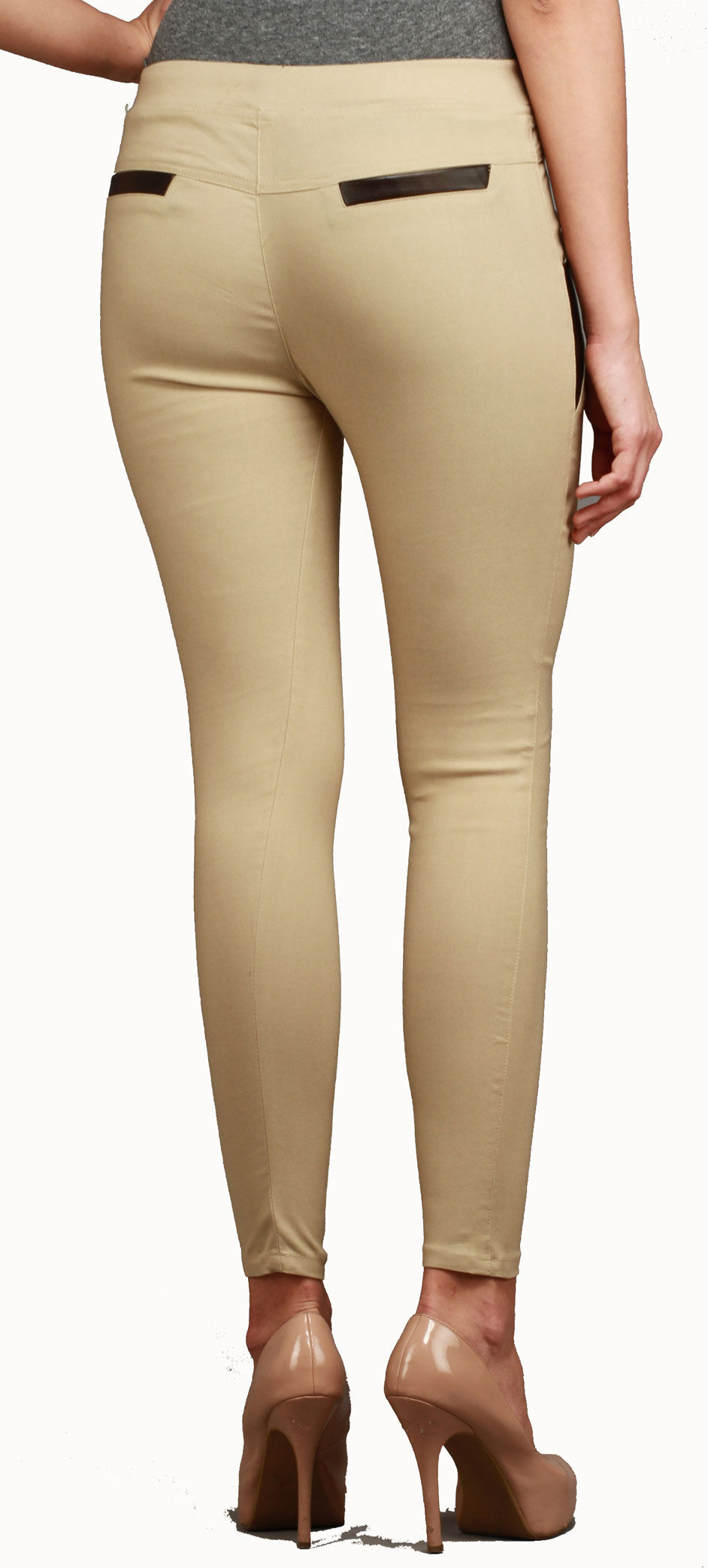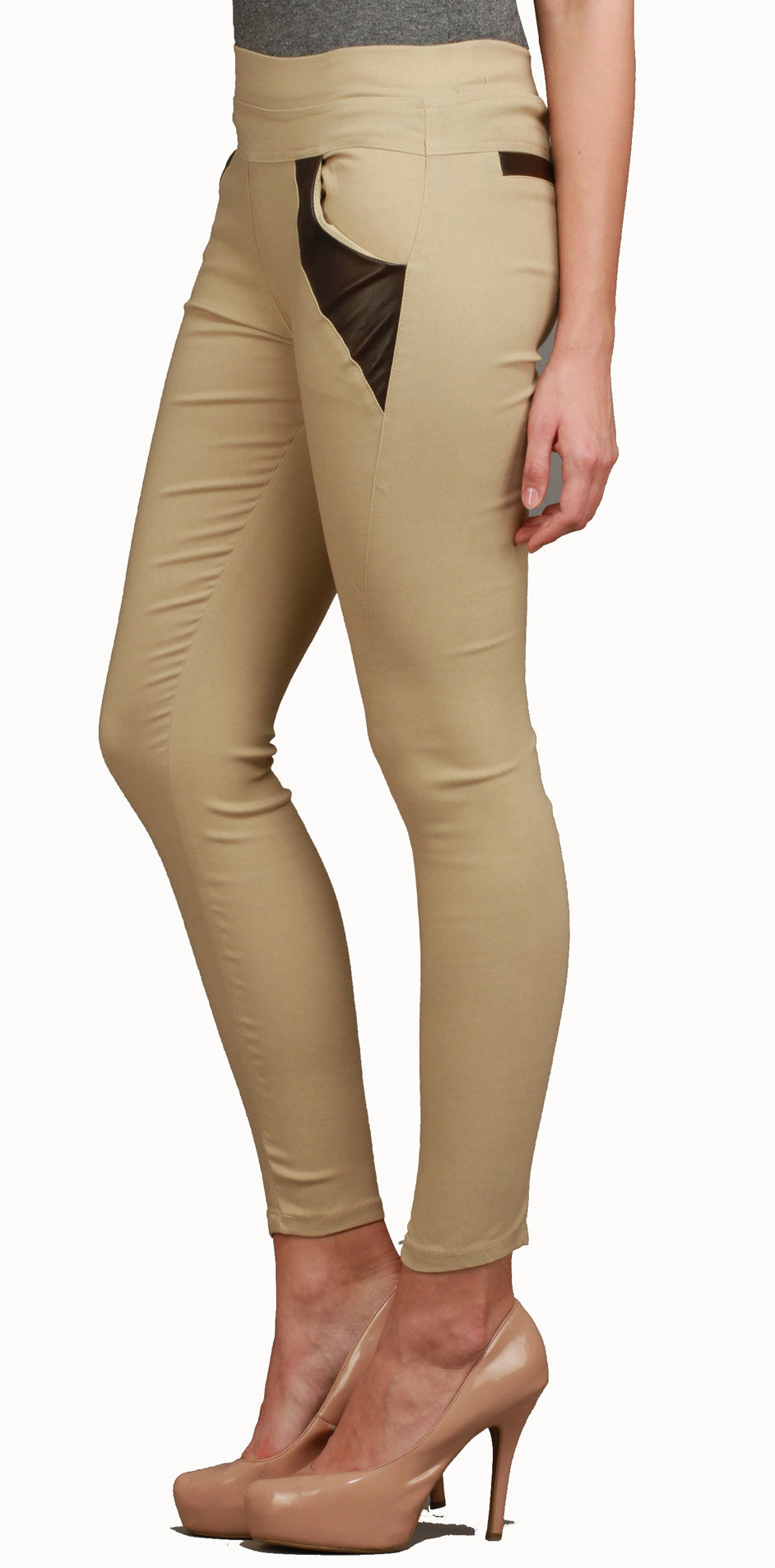 Beige and Brown color Jeggings in Cotton, Lycra fabric with Thread work