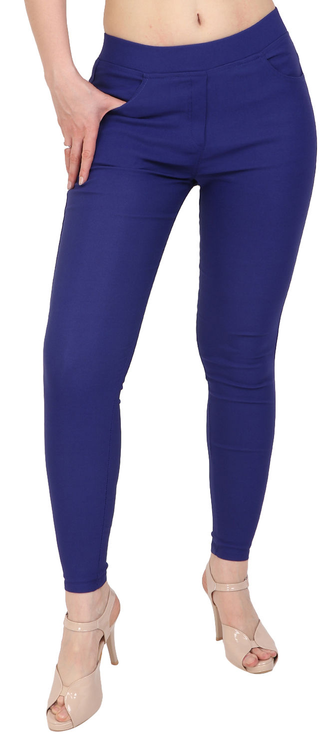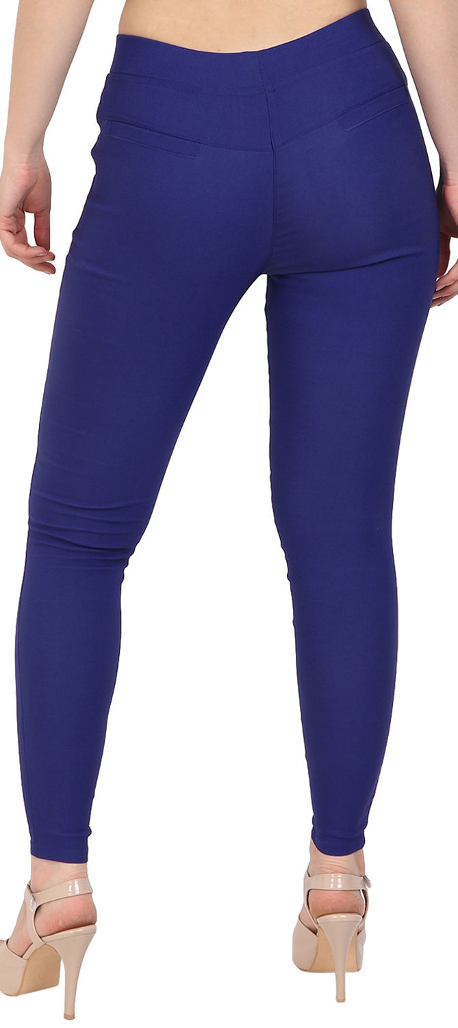 Blue color Jeggings in Cotton, Lycra fabric with Thread work