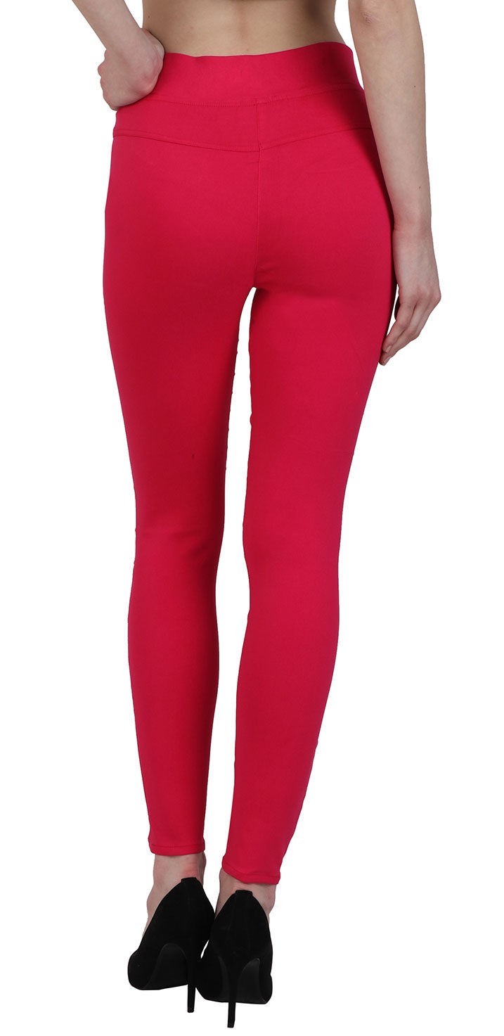 Pink and Majenta color Jeggings in Cotton, Lycra fabric with Thread work