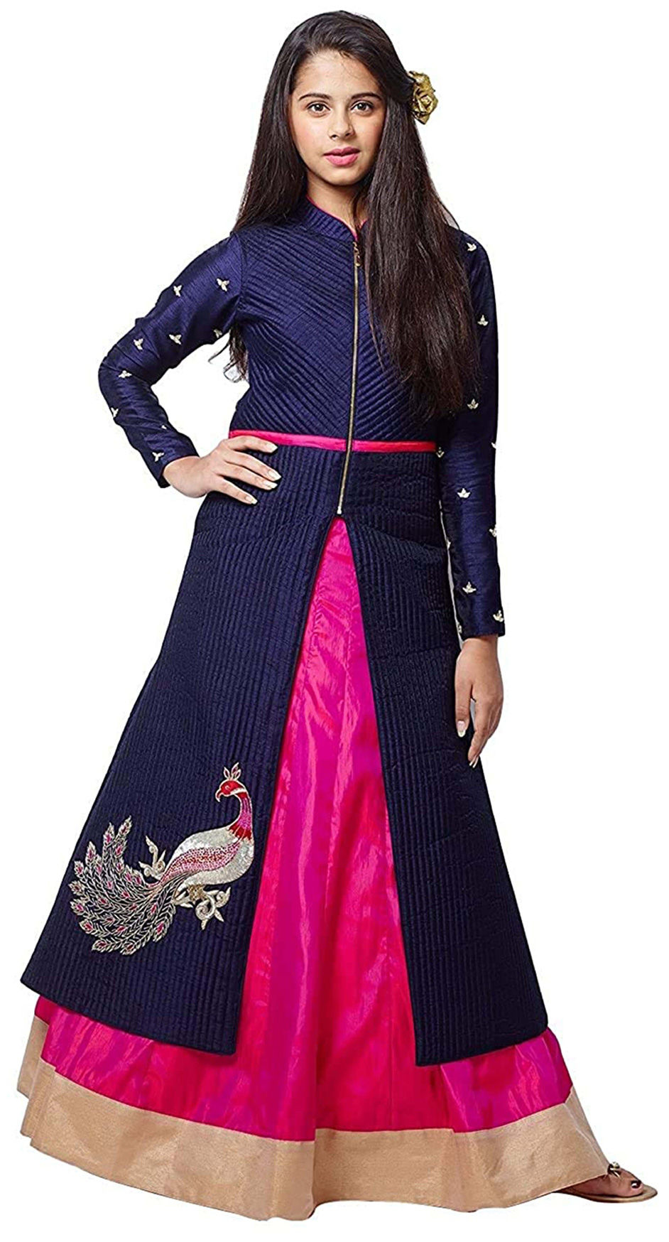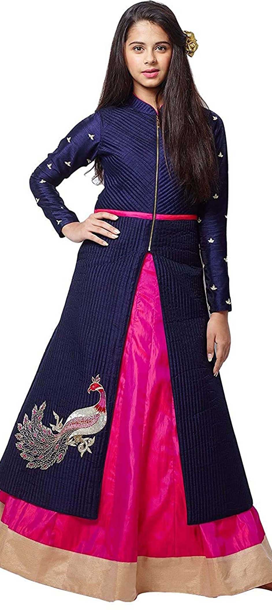 Blue, Pink and Majenta color Kids Lehenga in Bangalore Silk fabric with Embroidered, Resham, Thread work : 1747414