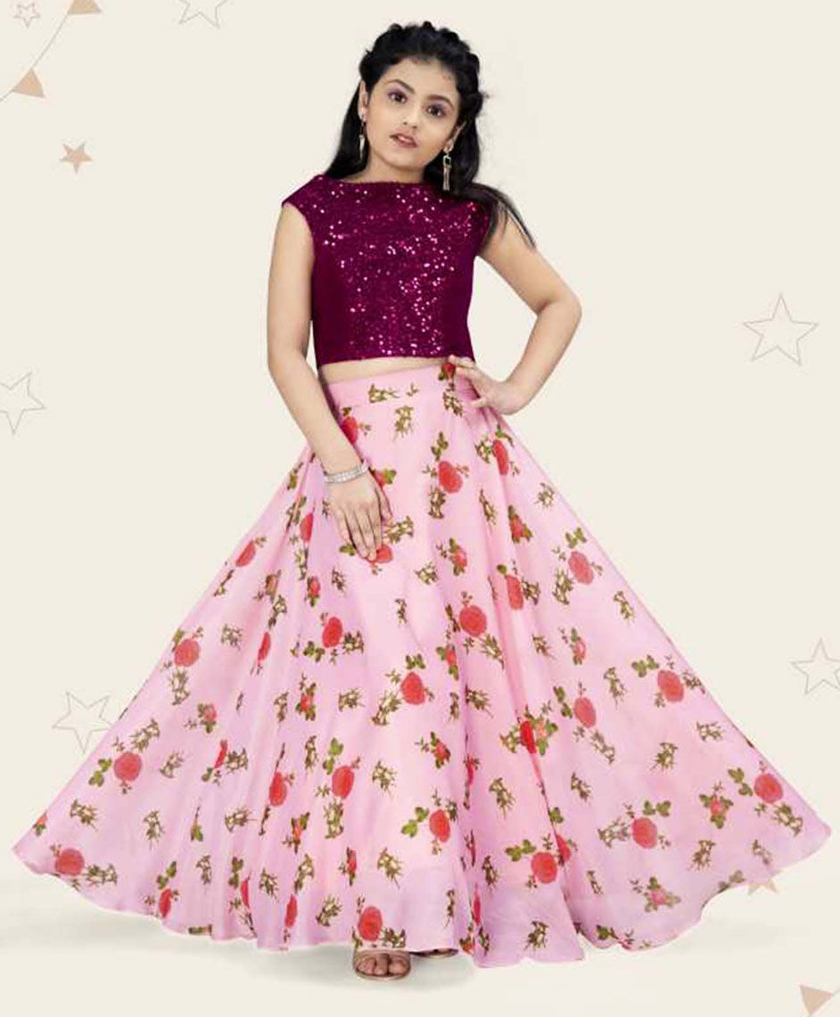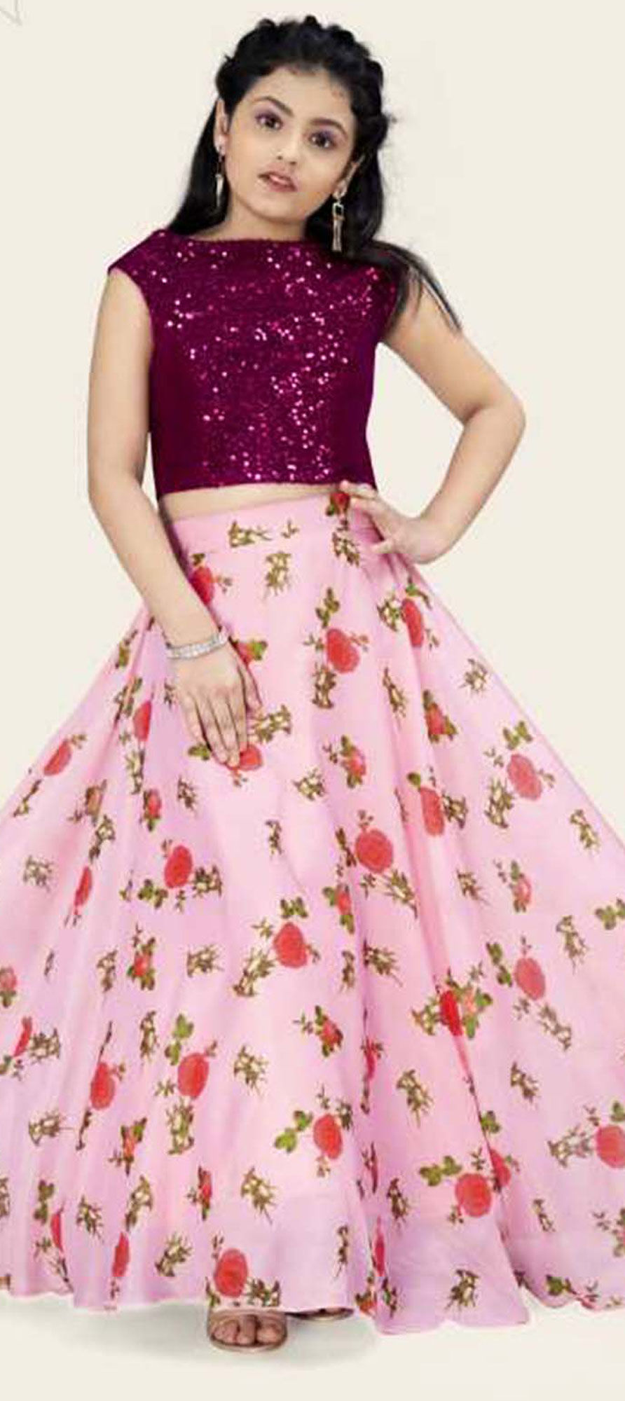 Pink and Majenta color Kids Lehenga in Blended fabric with Floral, Printed, Sequence work : 1764171