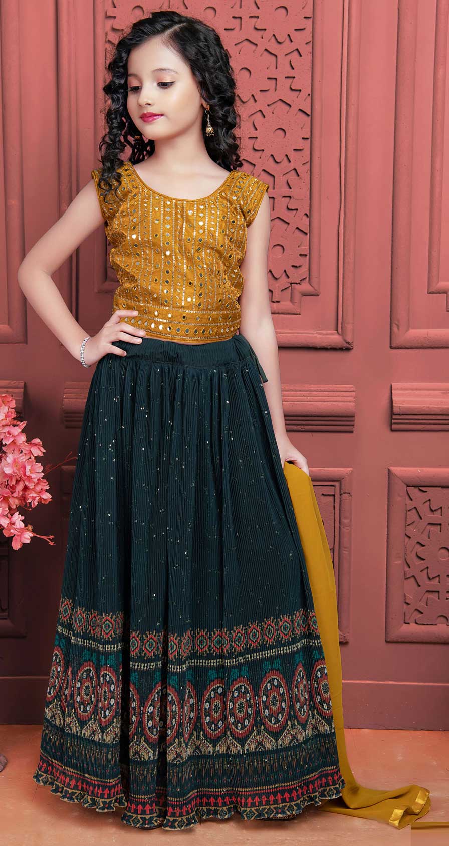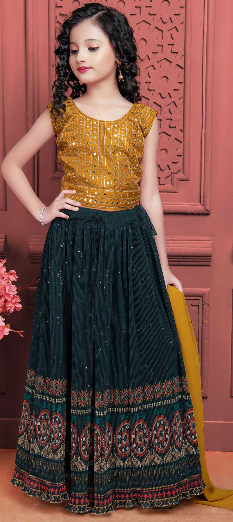 Blue color Kids Lehenga in Georgette fabric with Embroidered, Mirror, Sequence, Thread work