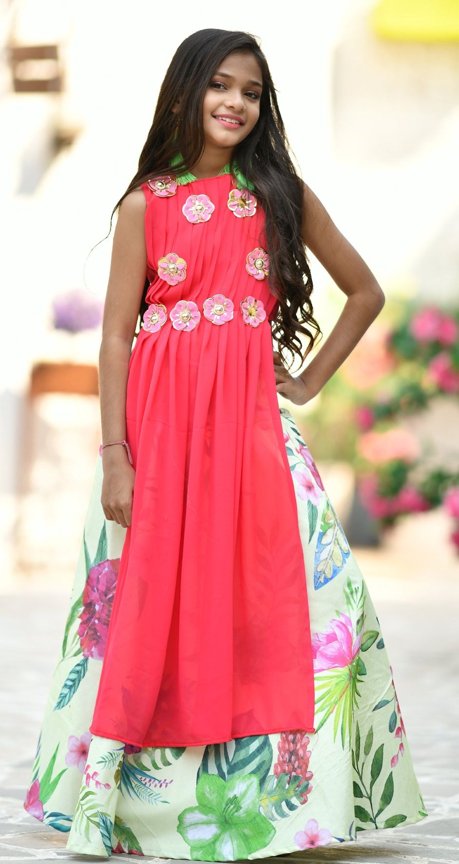 1551794: Pink and Majenta, White and Off White color Kids Lehenga in Georgette fabric with Digital Print, Floral, Patch work