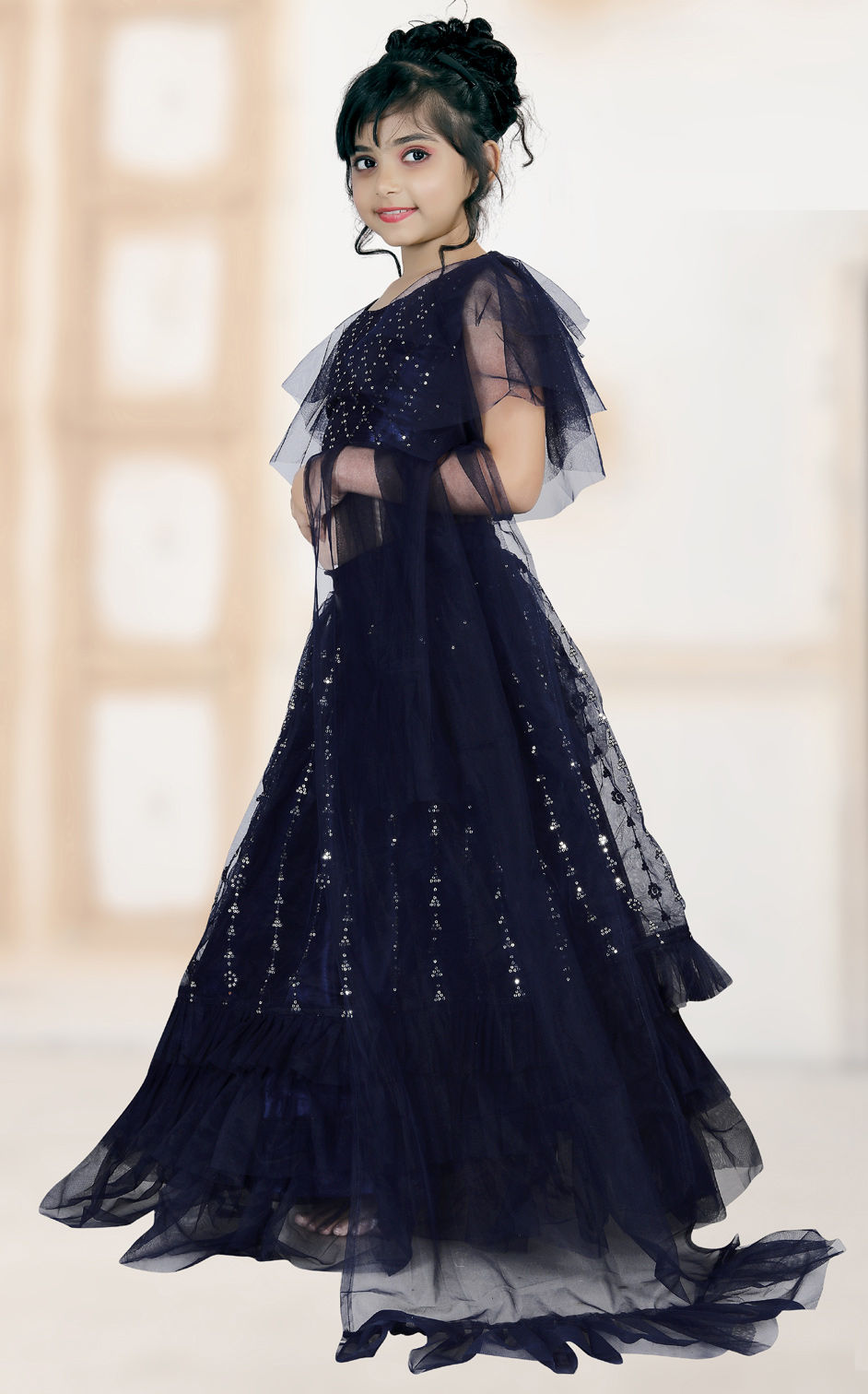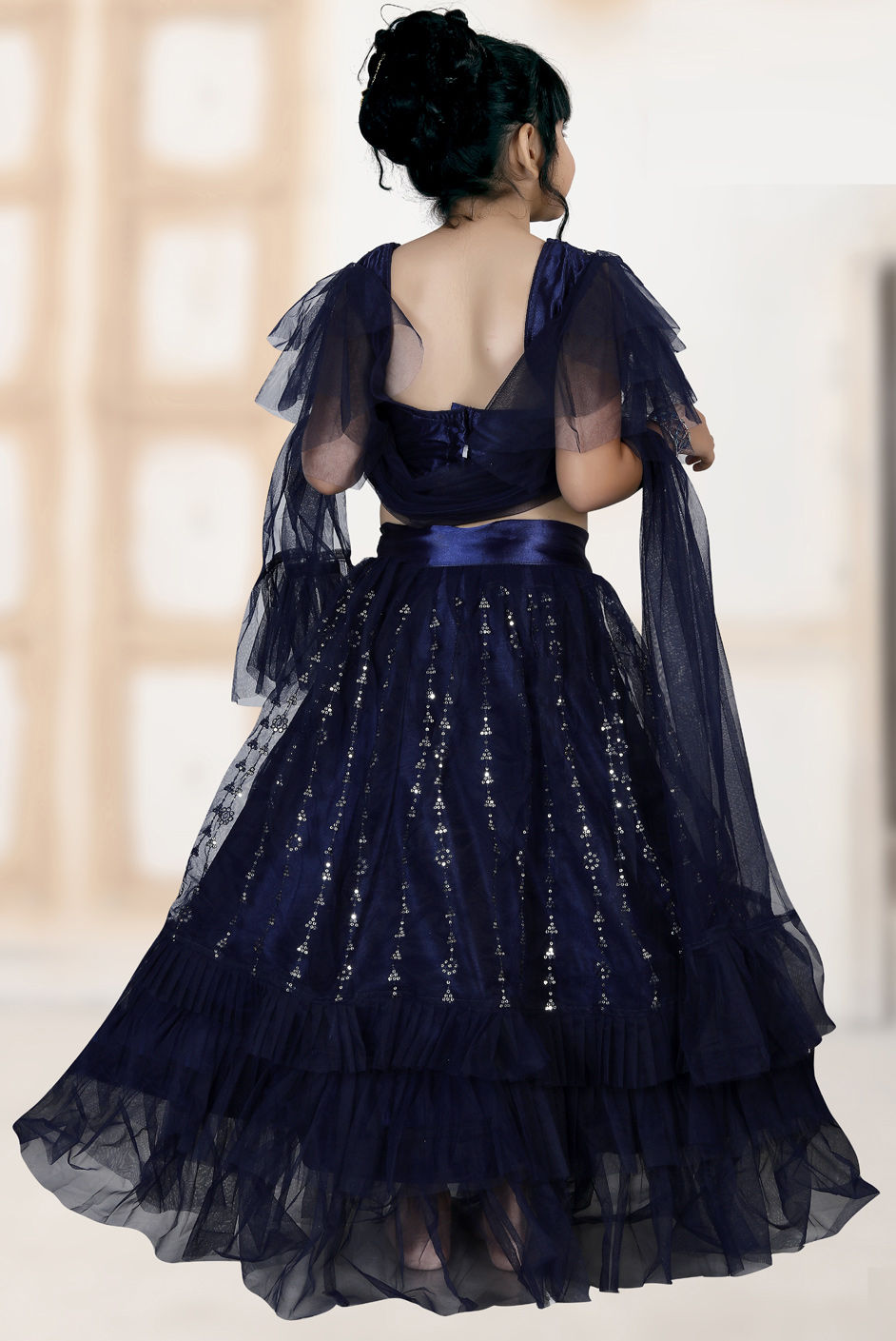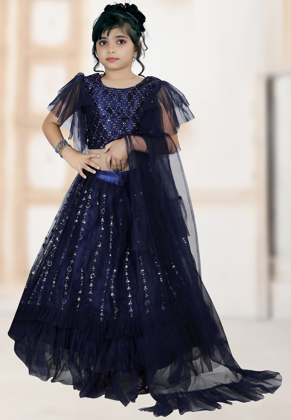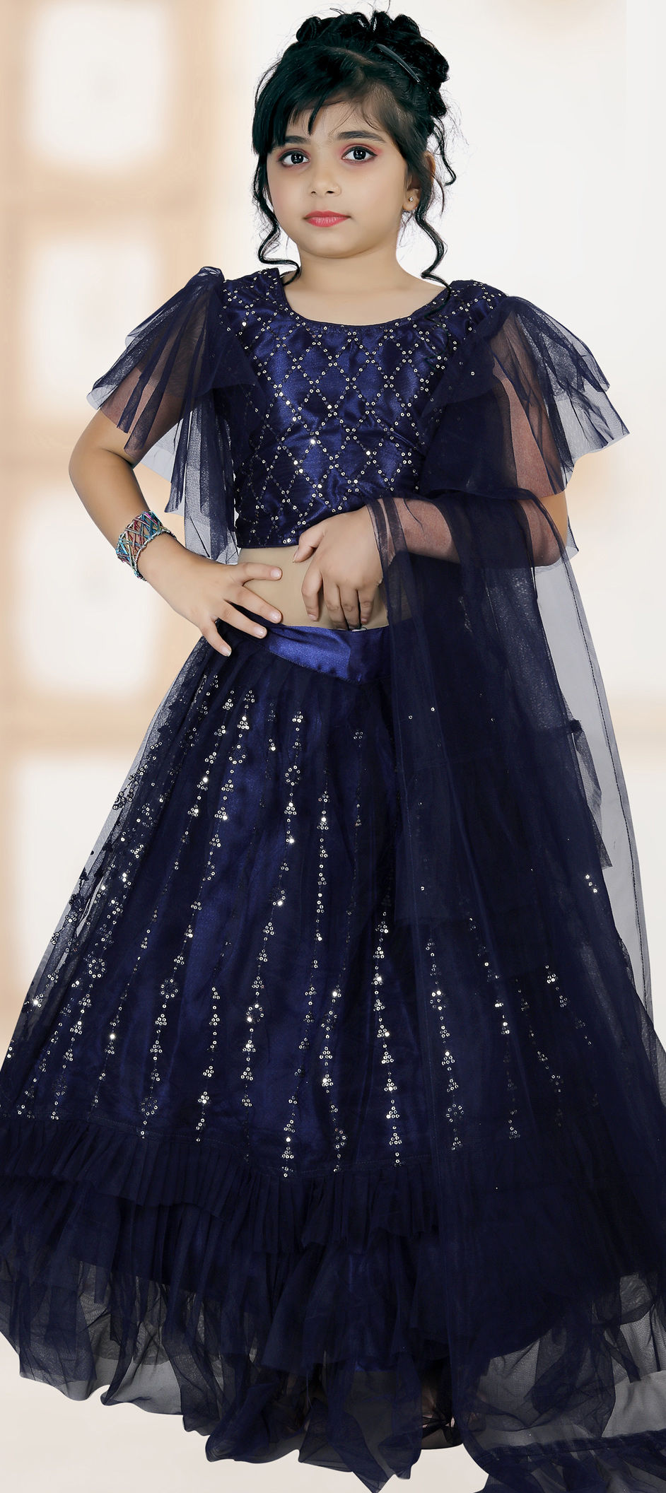Blue color Kids Lehenga in Net fabric with Embroidered, Sequence, Thread work