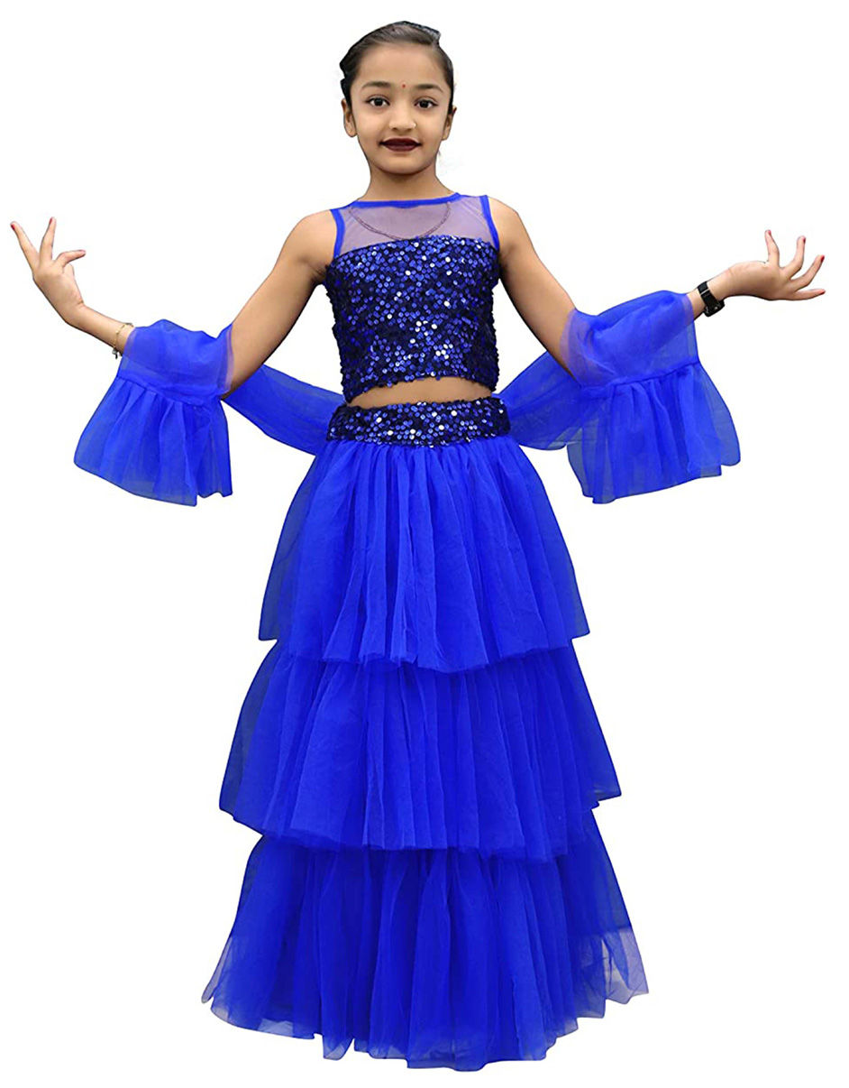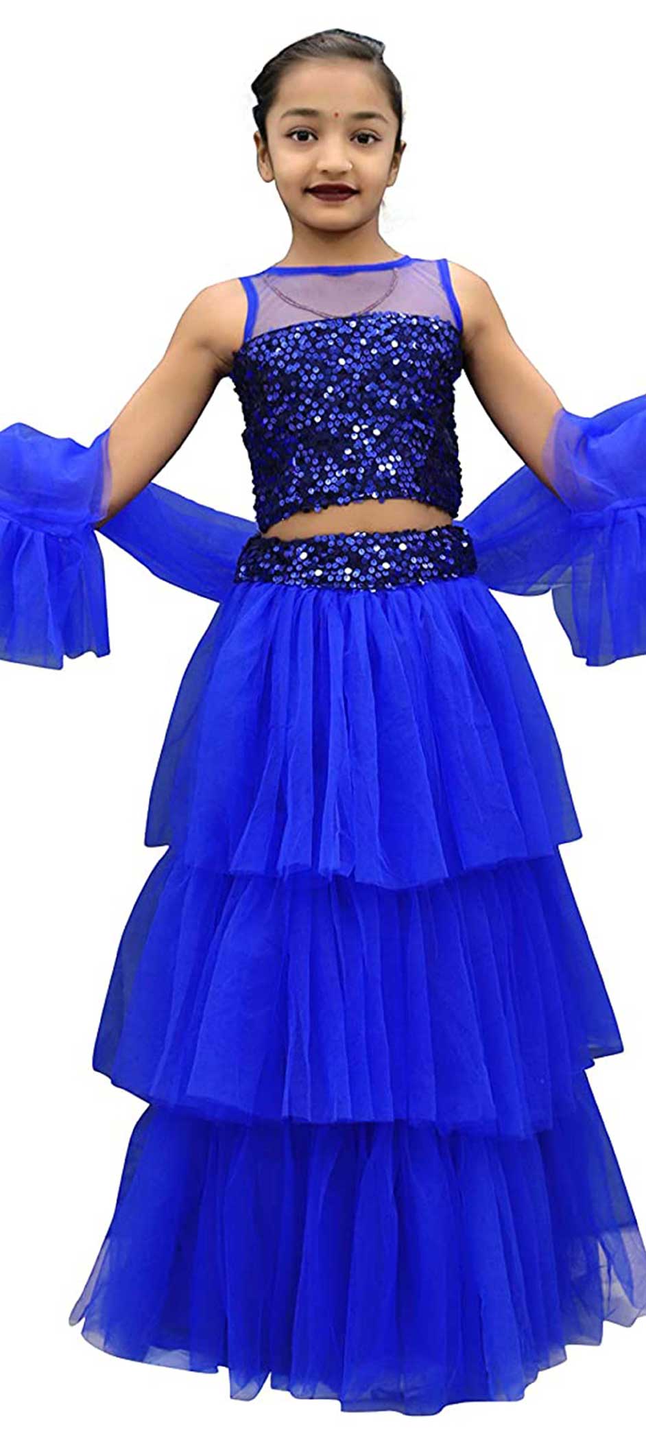 Blue color Kids Lehenga in Net fabric with Sequence work : 1747428