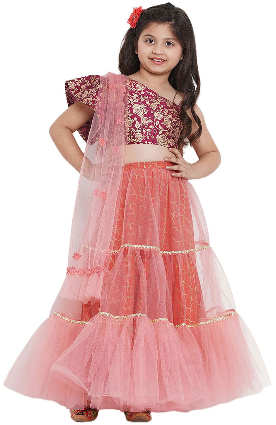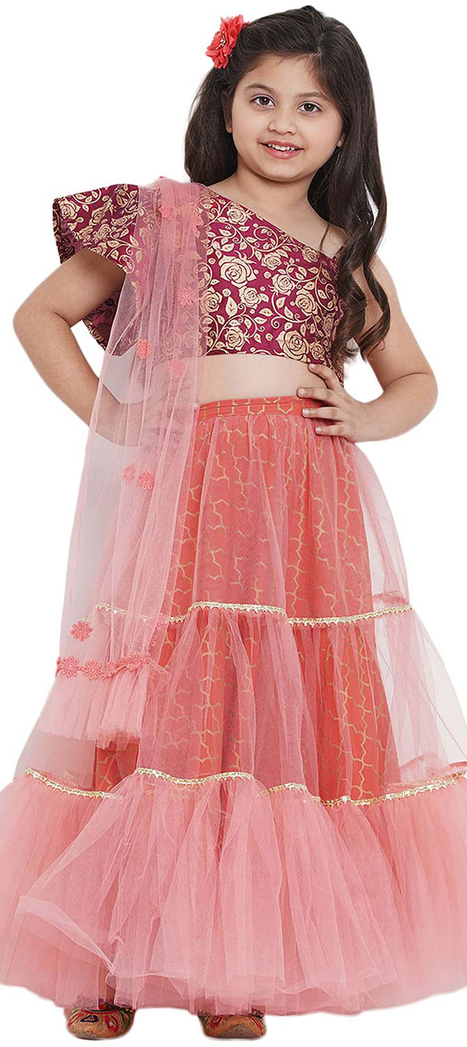 Pink and Majenta color Kids Lehenga in Net fabric with Printed work : 1764205