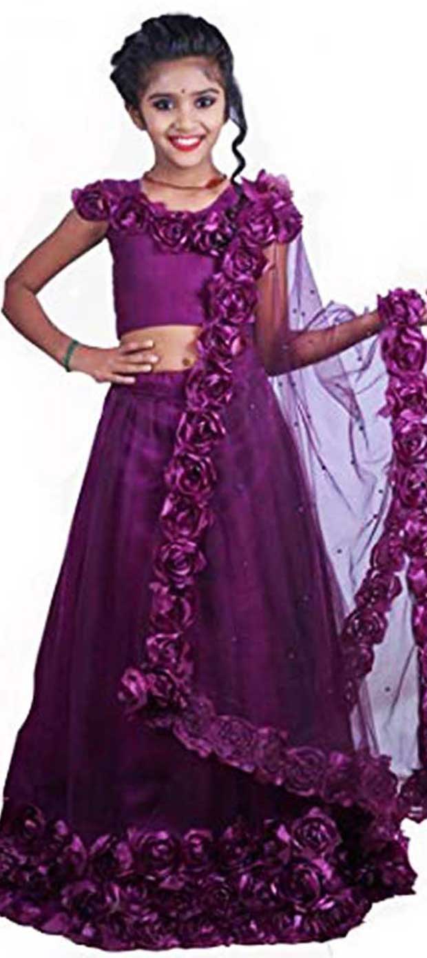 Purple and Violet color Kids Lehenga in Net fabric with Appliques work : 1747452