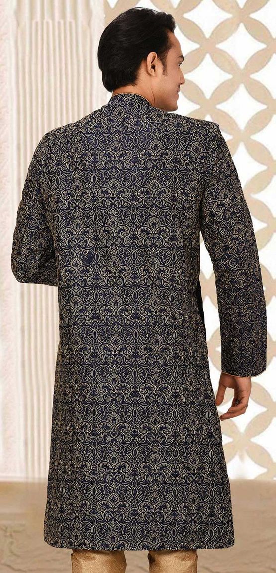Art Dupion Silk Kurta in Blue with Embroidered work