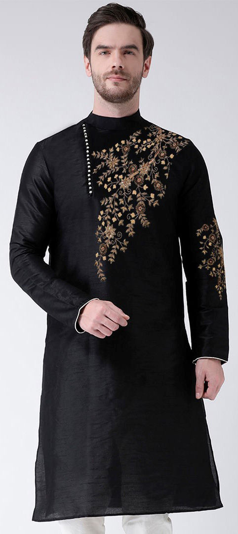 Black and Grey color Kurta in Art Silk fabric with Embroidered work