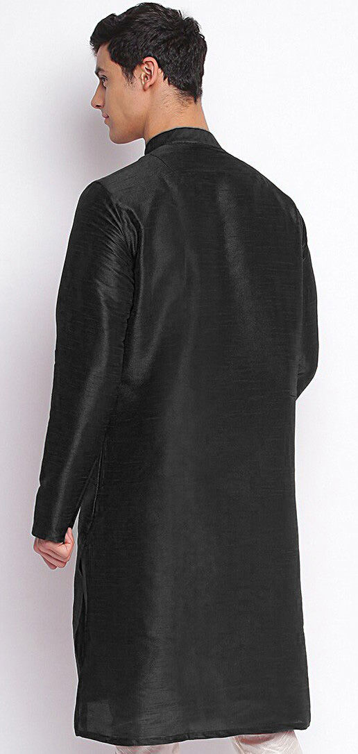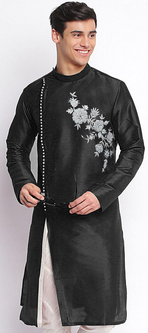 Black and Grey color Kurta in Art Silk fabric with Embroidered work