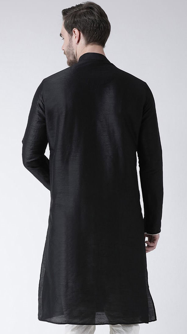 Art Silk Kurta in Black and Grey with Embroidered work