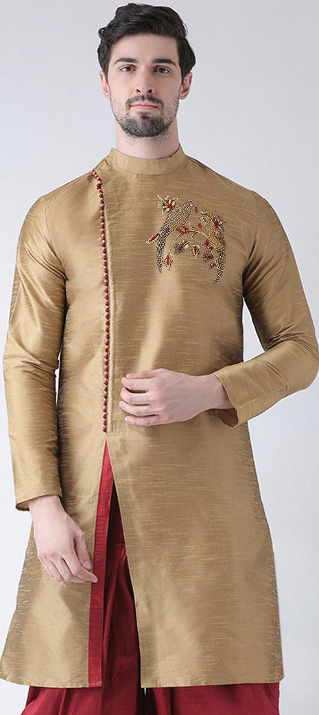 Art Silk Kurta in Beige and Brown with Embroidered work