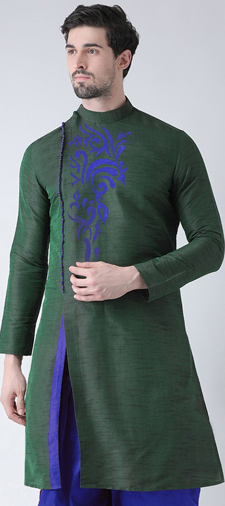 Art Silk Kurta in Green with Embroidered work