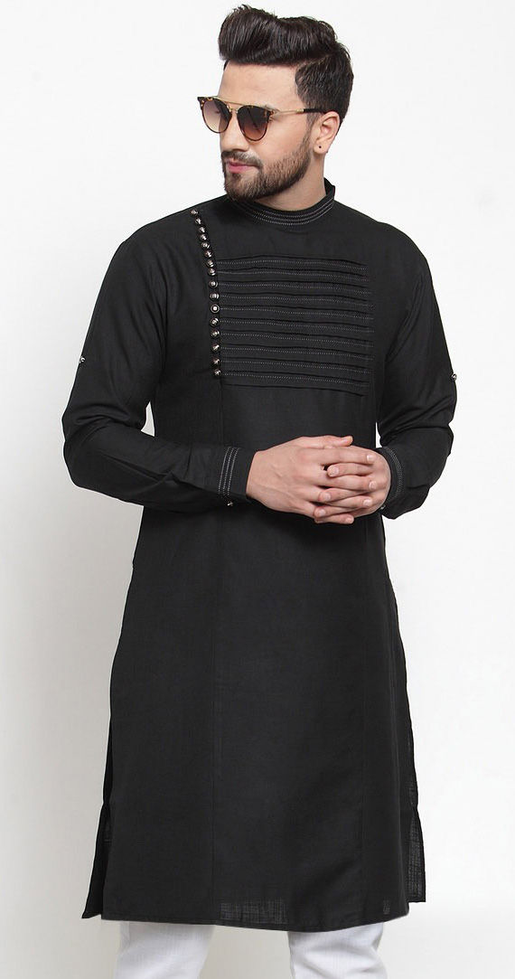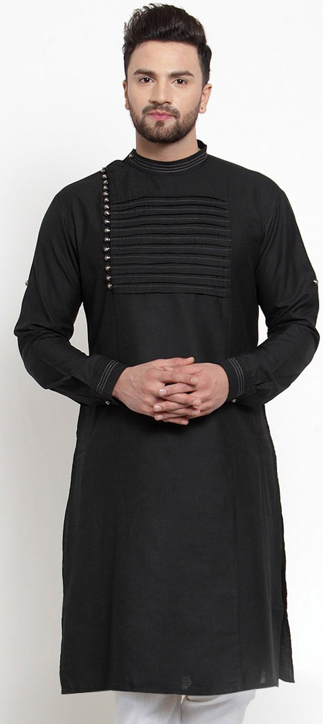 Black and Grey color Kurta in Blended Cotton fabric with Thread work