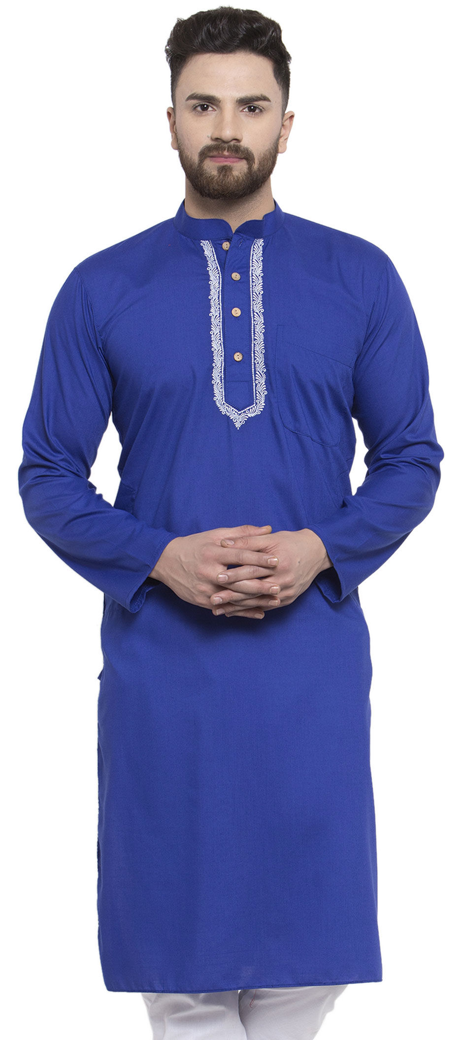 Blue color Kurta in Blended Cotton fabric with Embroidered, Thread work