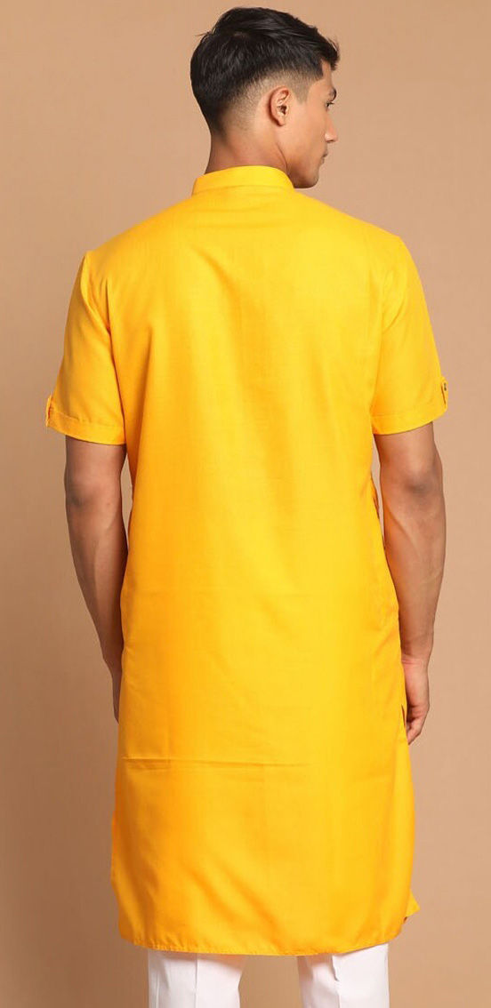 Yellow color Kurta in Blended Cotton fabric with Thread work