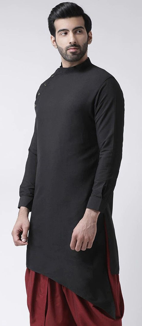 Dupion Silk Kurta in Black and Grey with Thread work