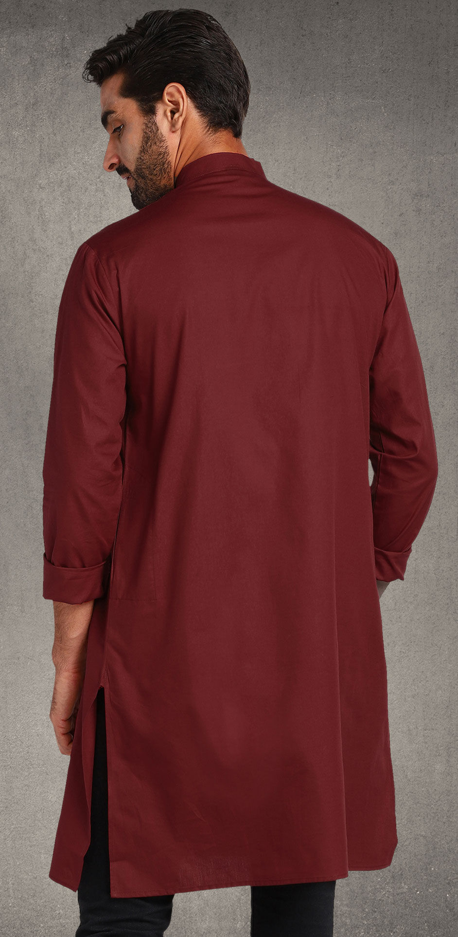 Red and Maroon color Kurta in Cotton fabric with Thread work
