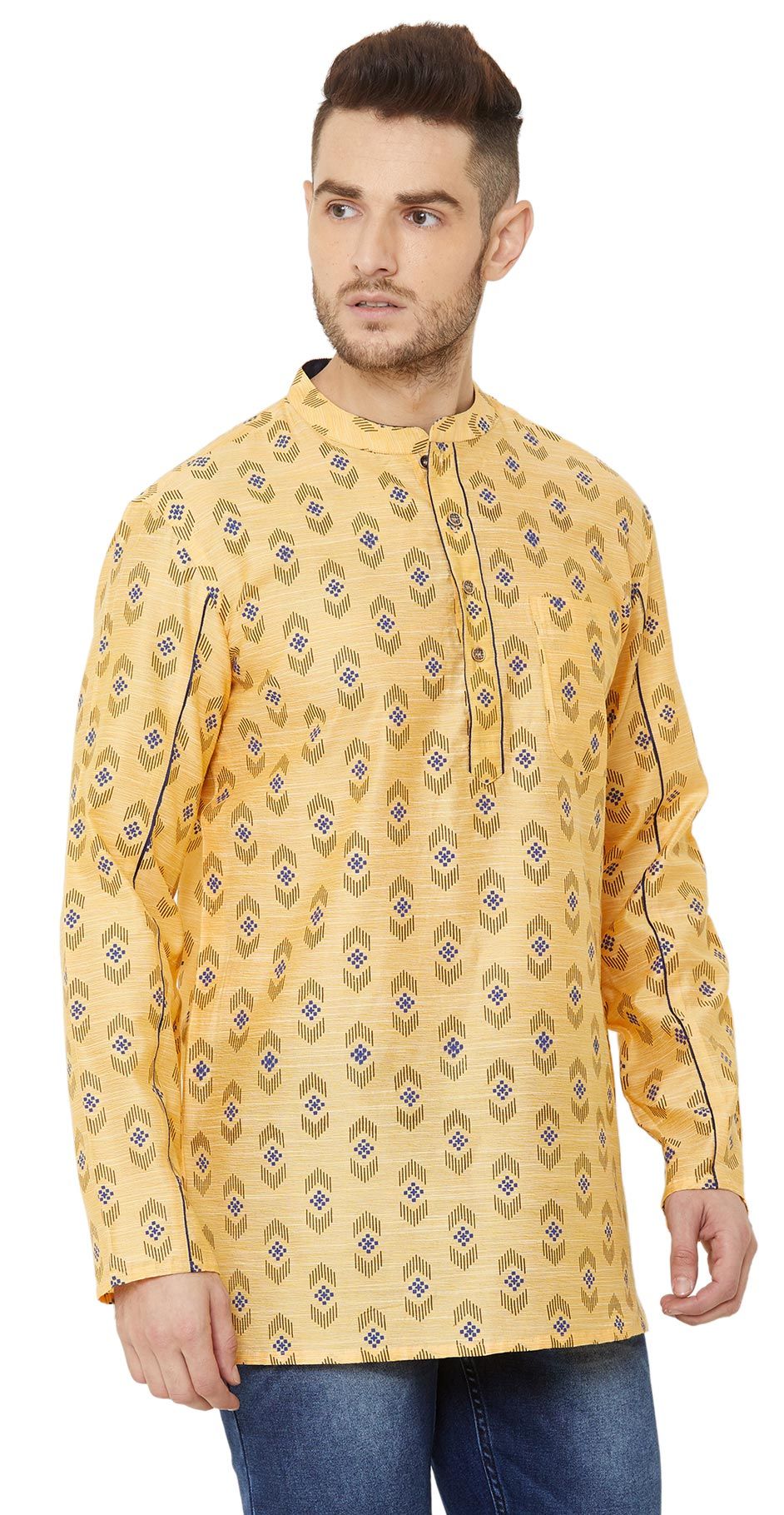 Yellow color Kurta in Cotton fabric with Printed work