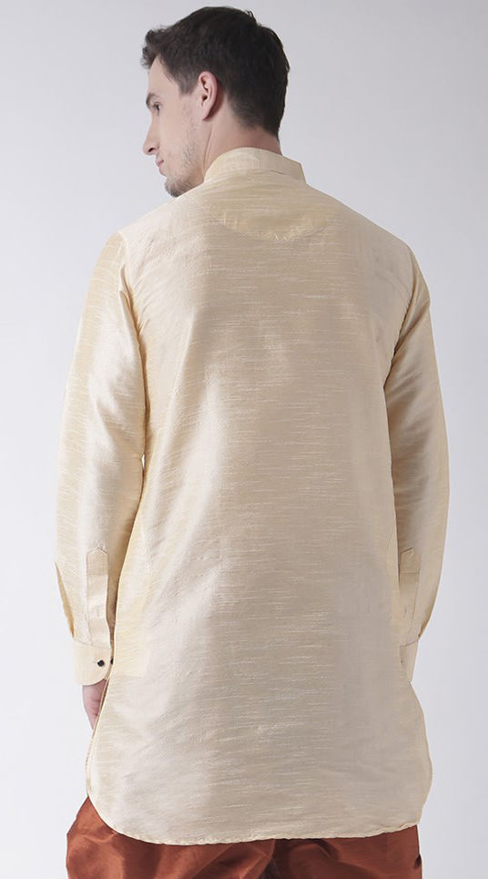 Dupion Silk Kurta in Beige and Brown with Thread work