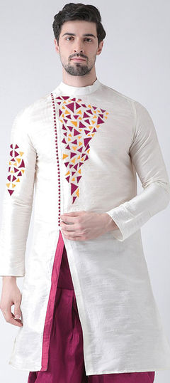 Black and Grey color Kurta in Dupion Silk fabric with Embroidered, Resham, Thread work