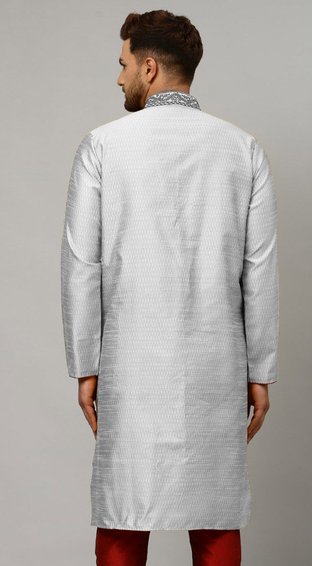Black and Grey color Kurta in Dupion Silk fabric with Thread work