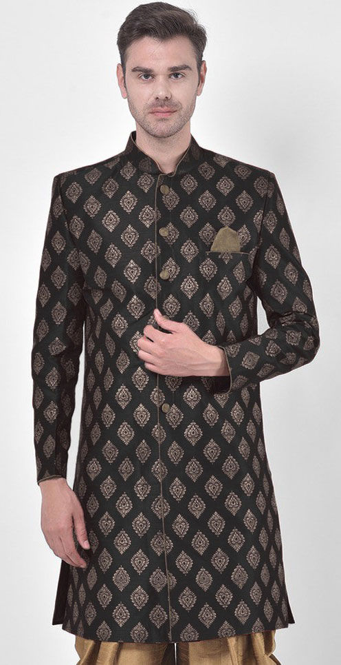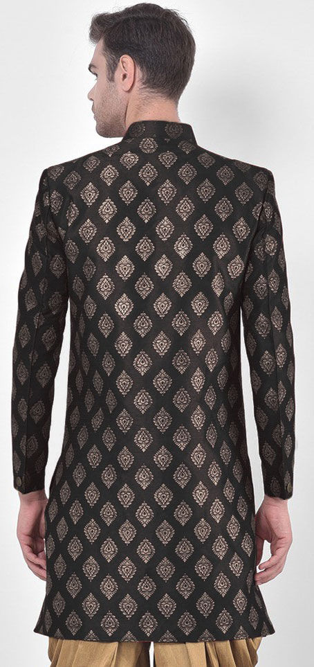 Black and Grey color Kurta in Dupion Silk fabric with Weaving work