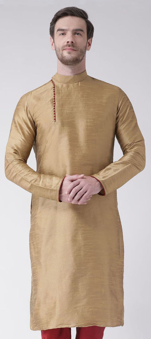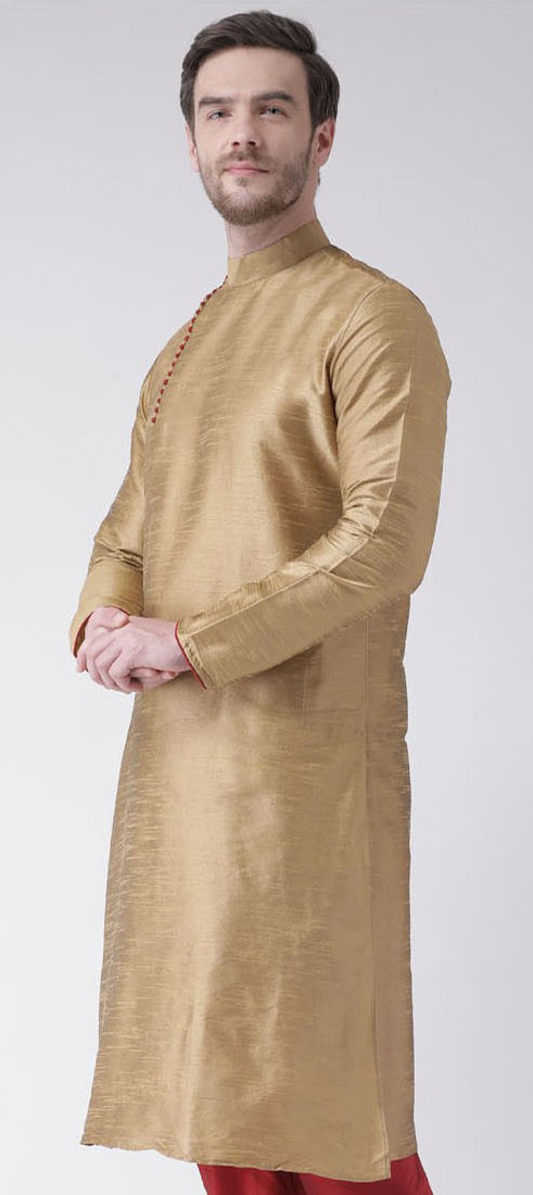 Gold color Kurta in Dupion Silk fabric with Thread work