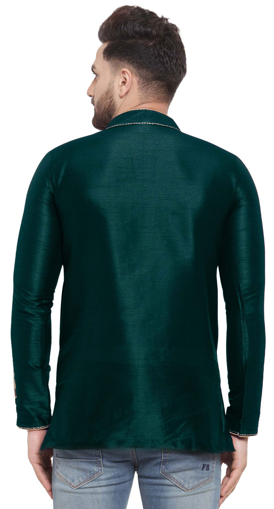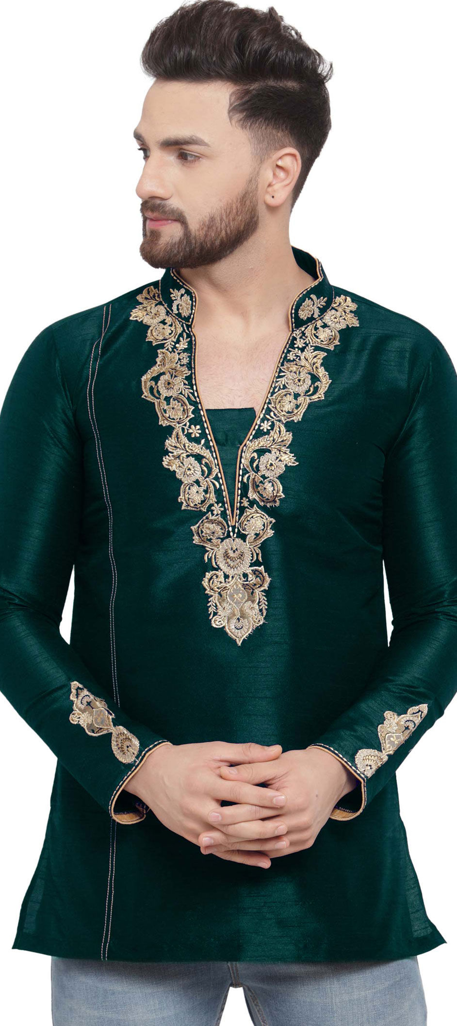 Green color Kurta in Dupion Silk fabric with Embroidered, Patch, Thread work