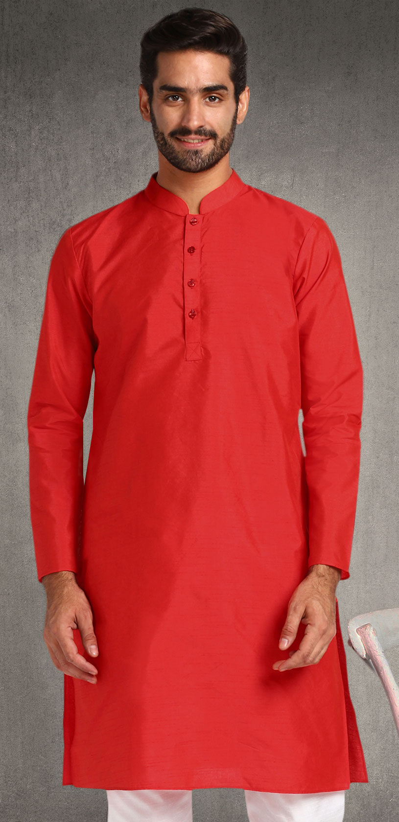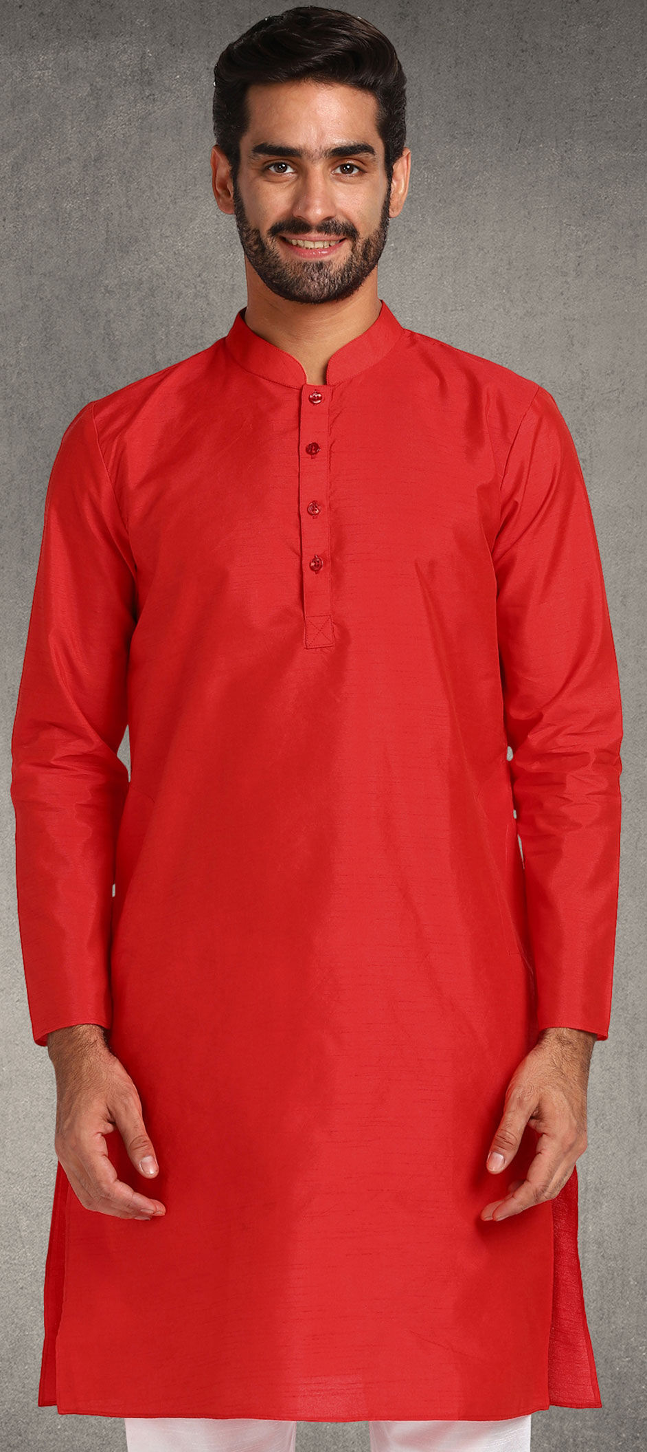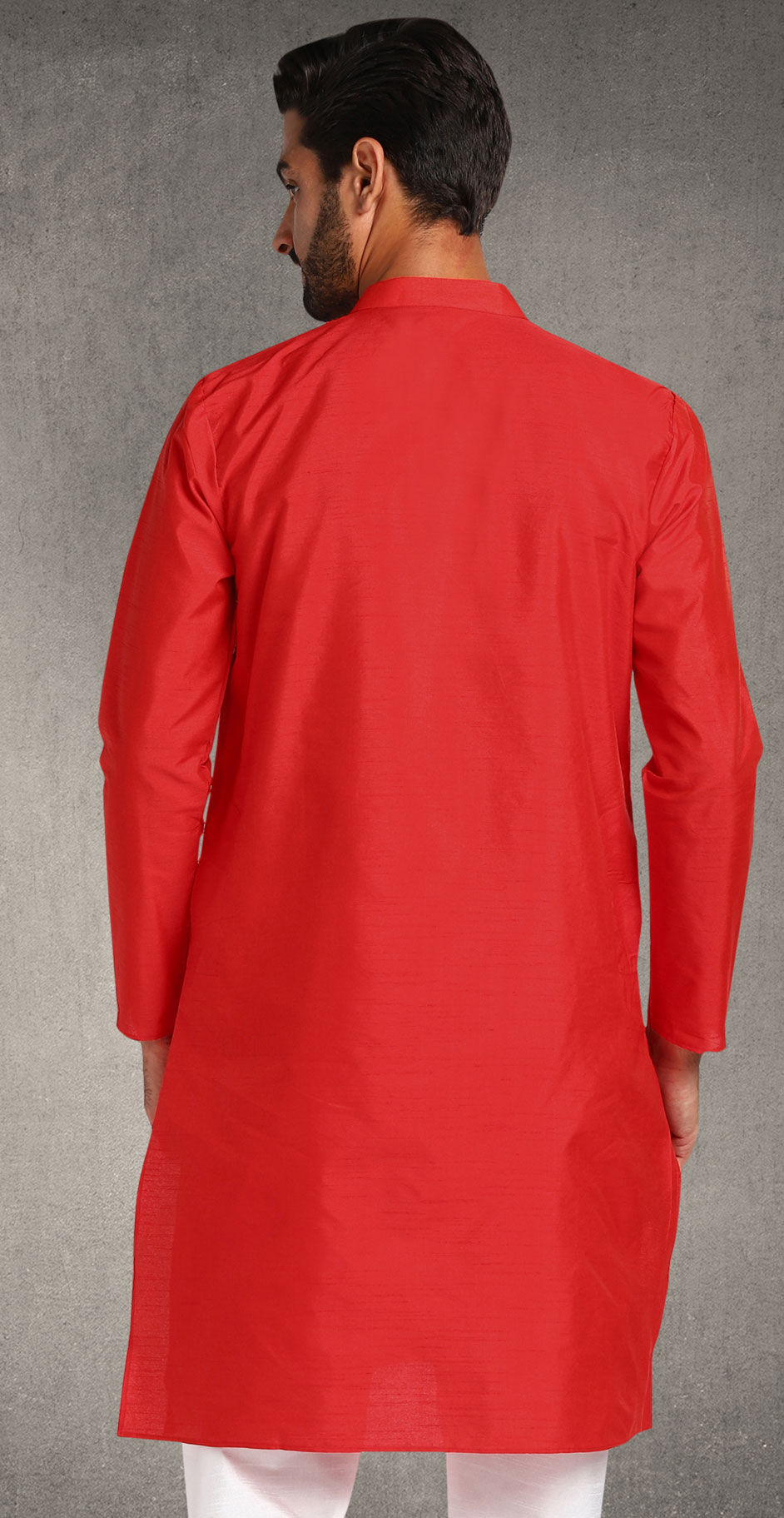 Red and Maroon color Kurta in Dupion Silk fabric with Thread work