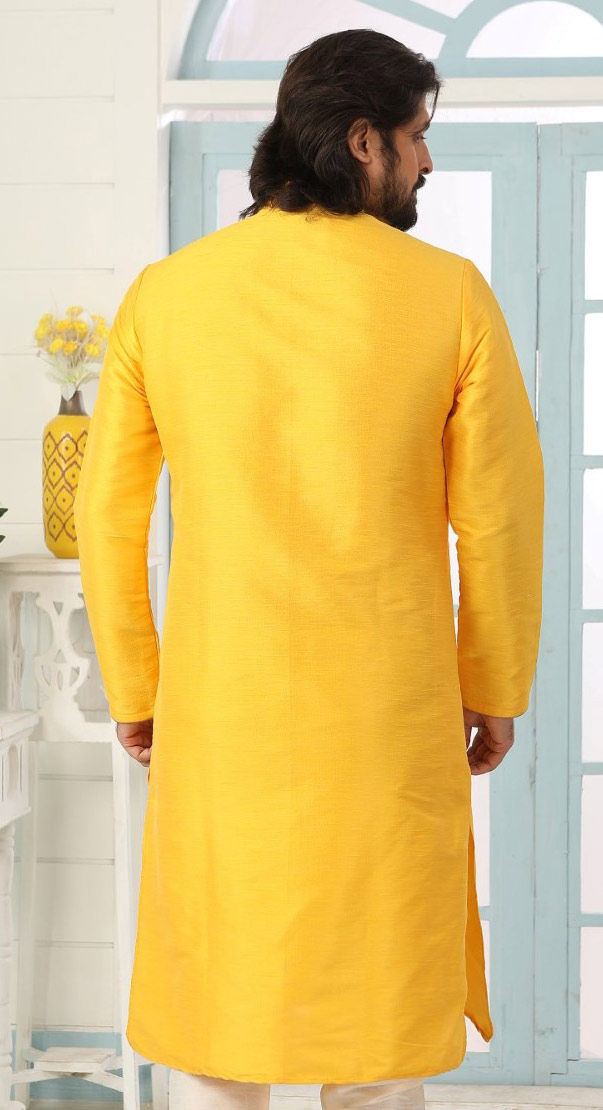 Yellow color Kurta in Dupion Silk fabric with Thread work